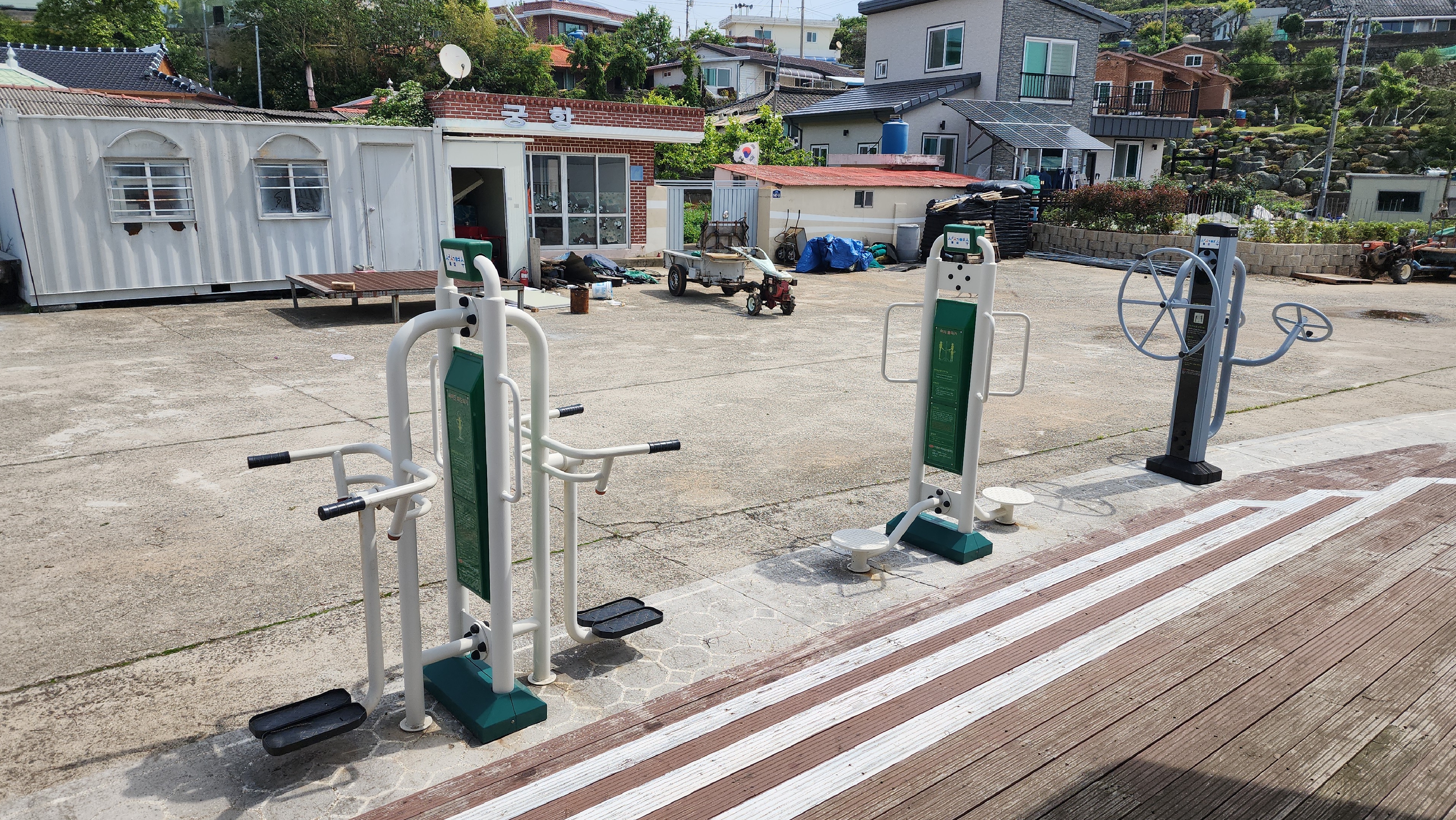 궁항마을 정자를 중심으로 주변에 어르신들이 운동할 수 있는 시설들이 마련되어 있다.