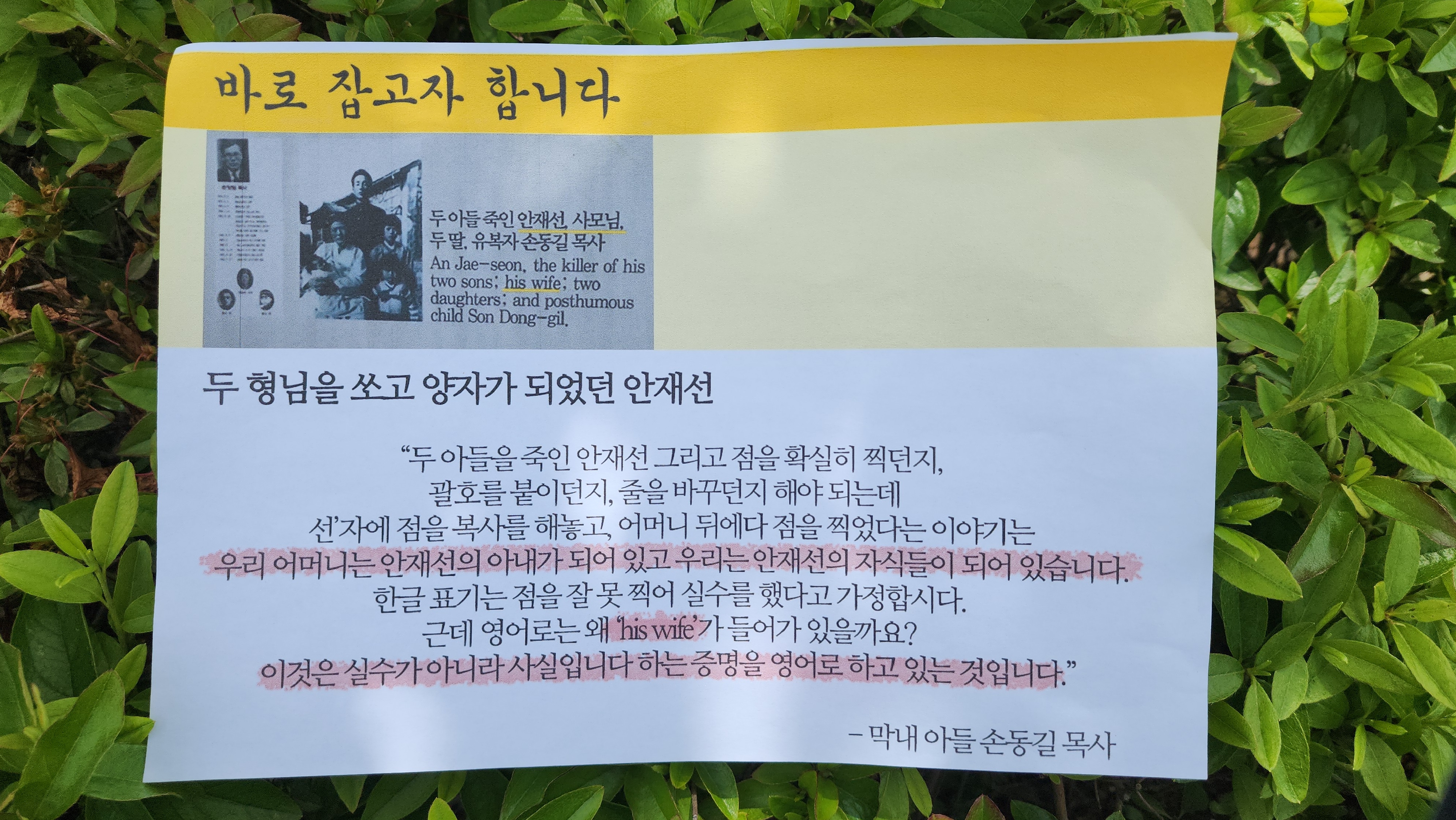 손양원 목사님과 정양순 사모님의 본명까지 알려주었다.