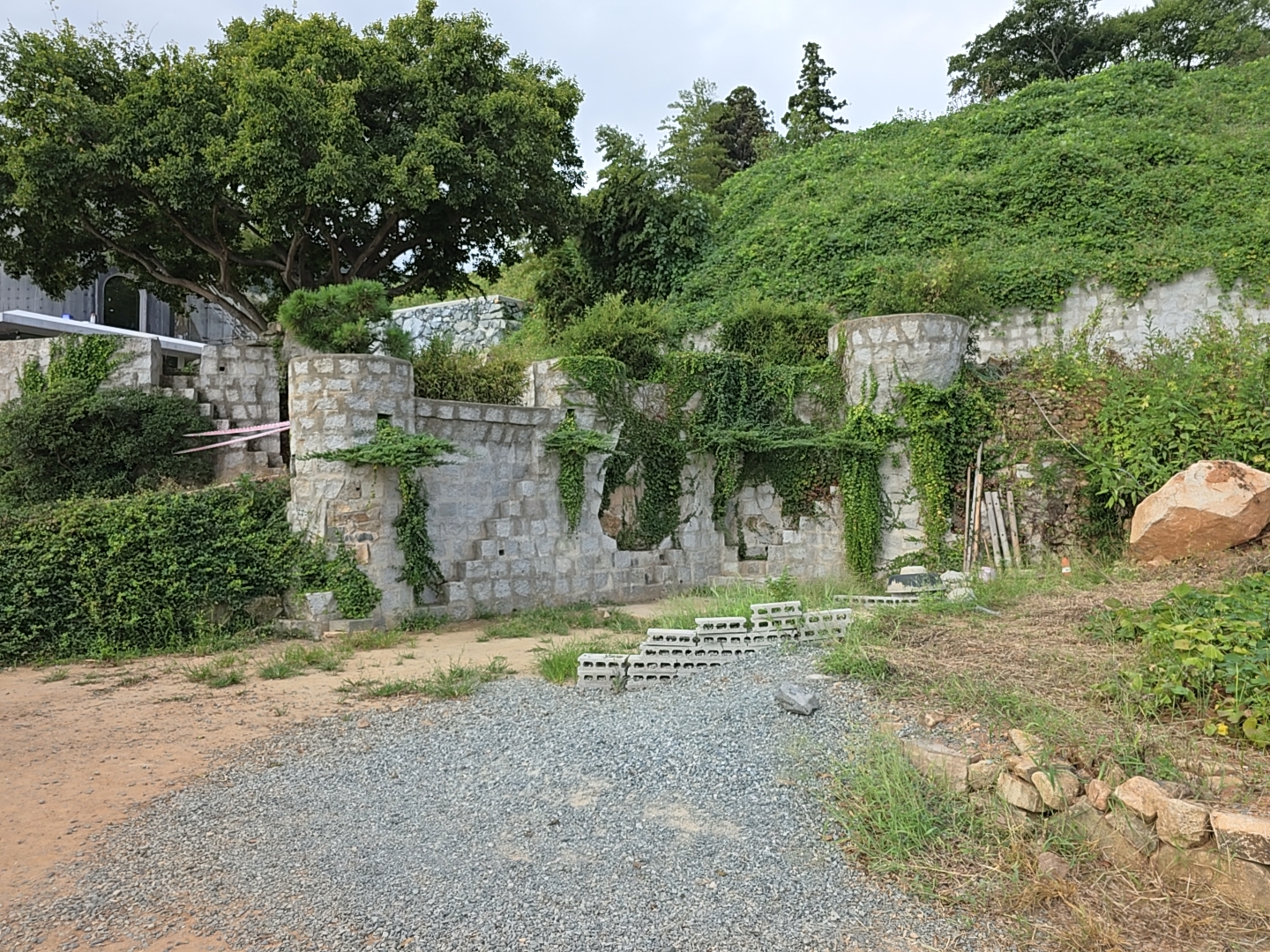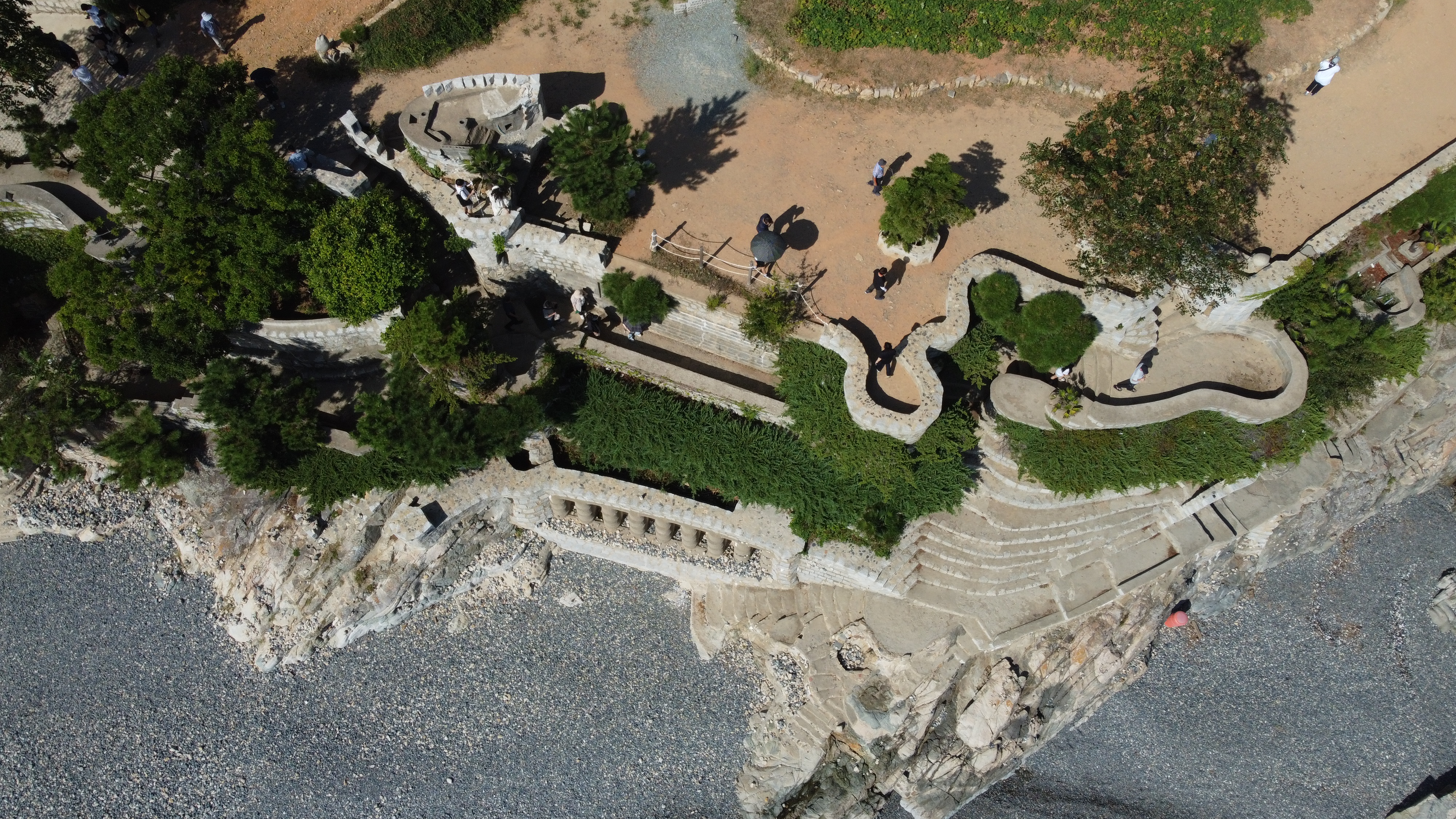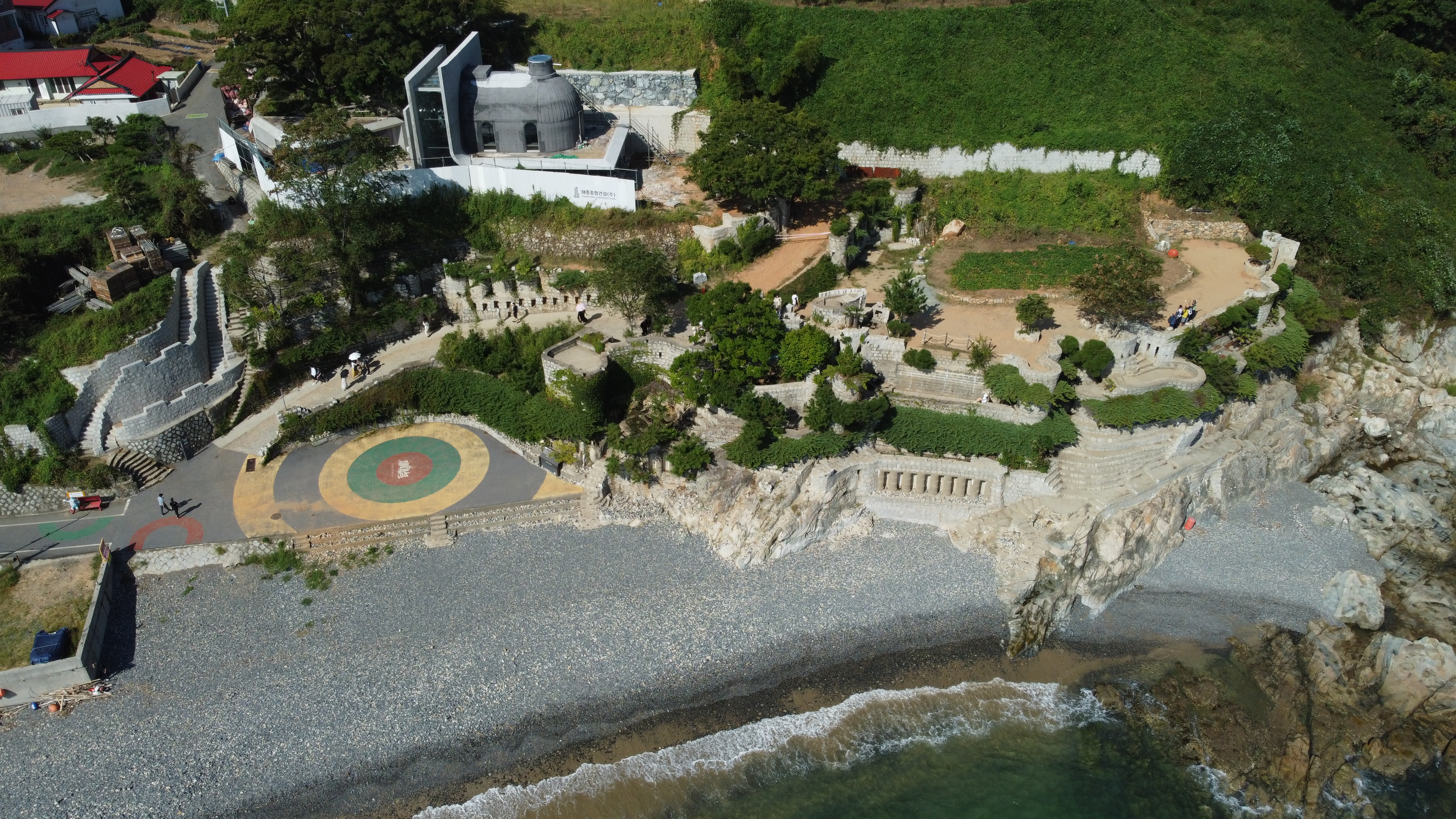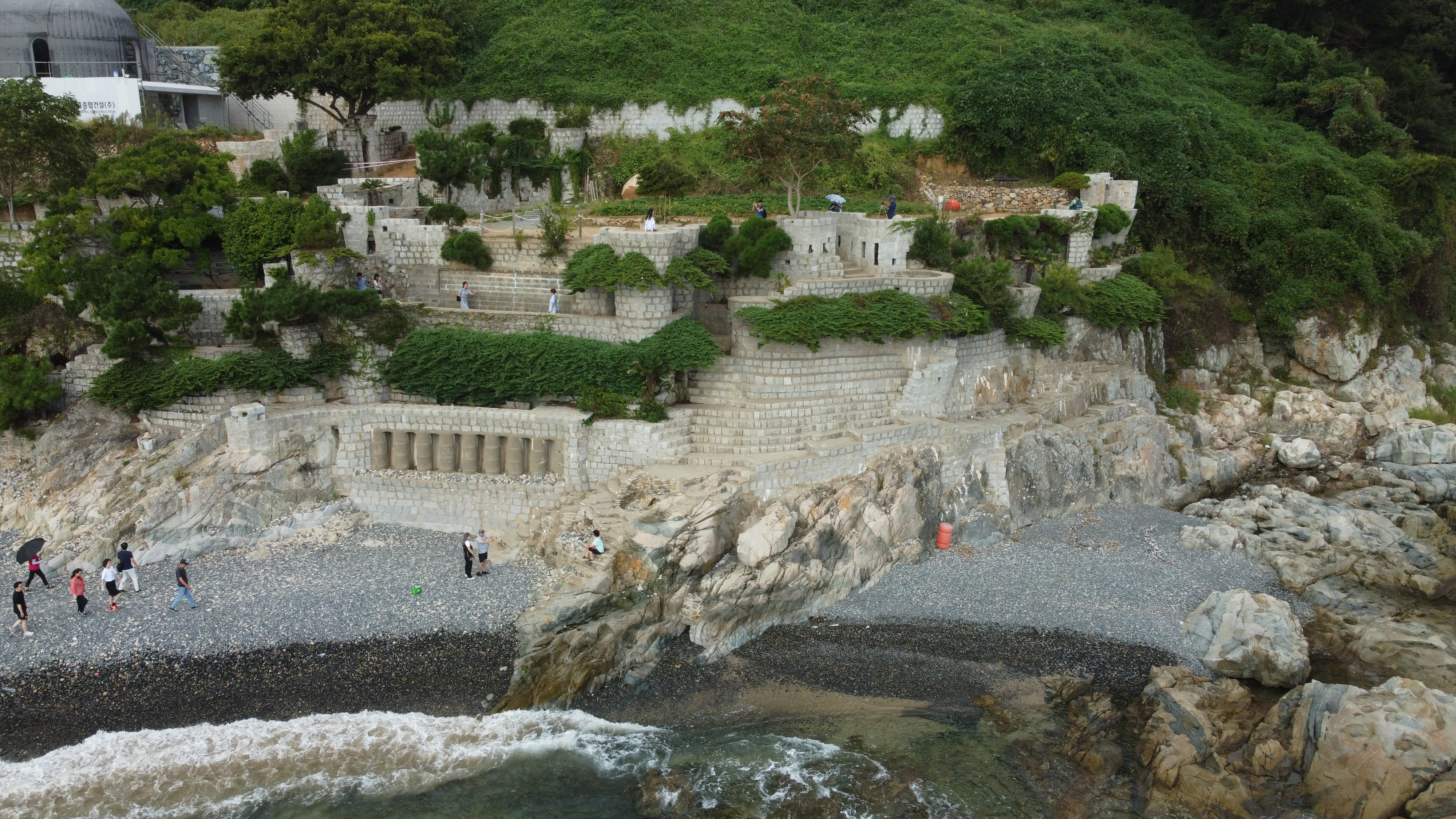 그런데 매미성을 만들면서 바닷가 공유수면을 침범하면서 불법건축물이 되었다.