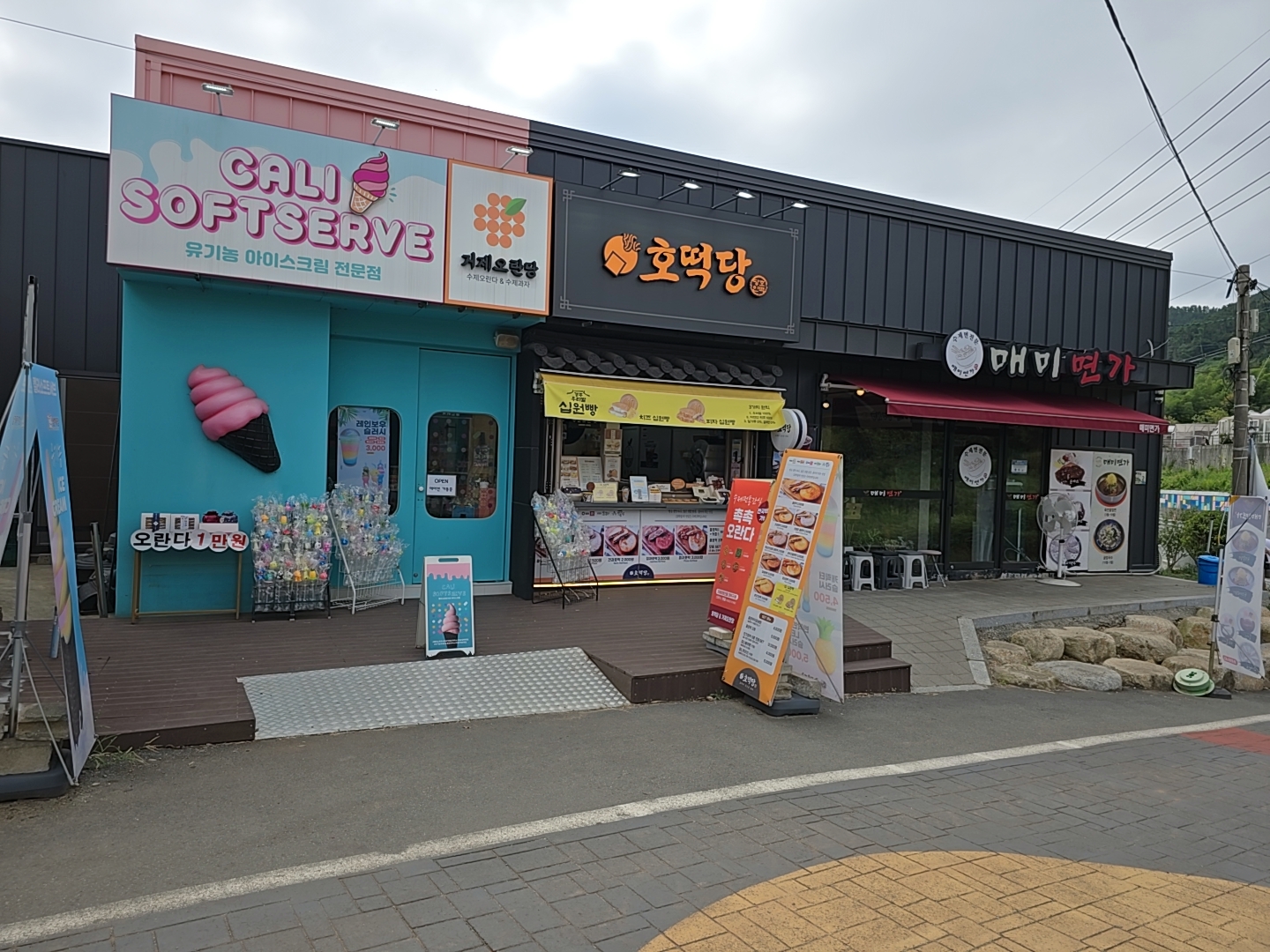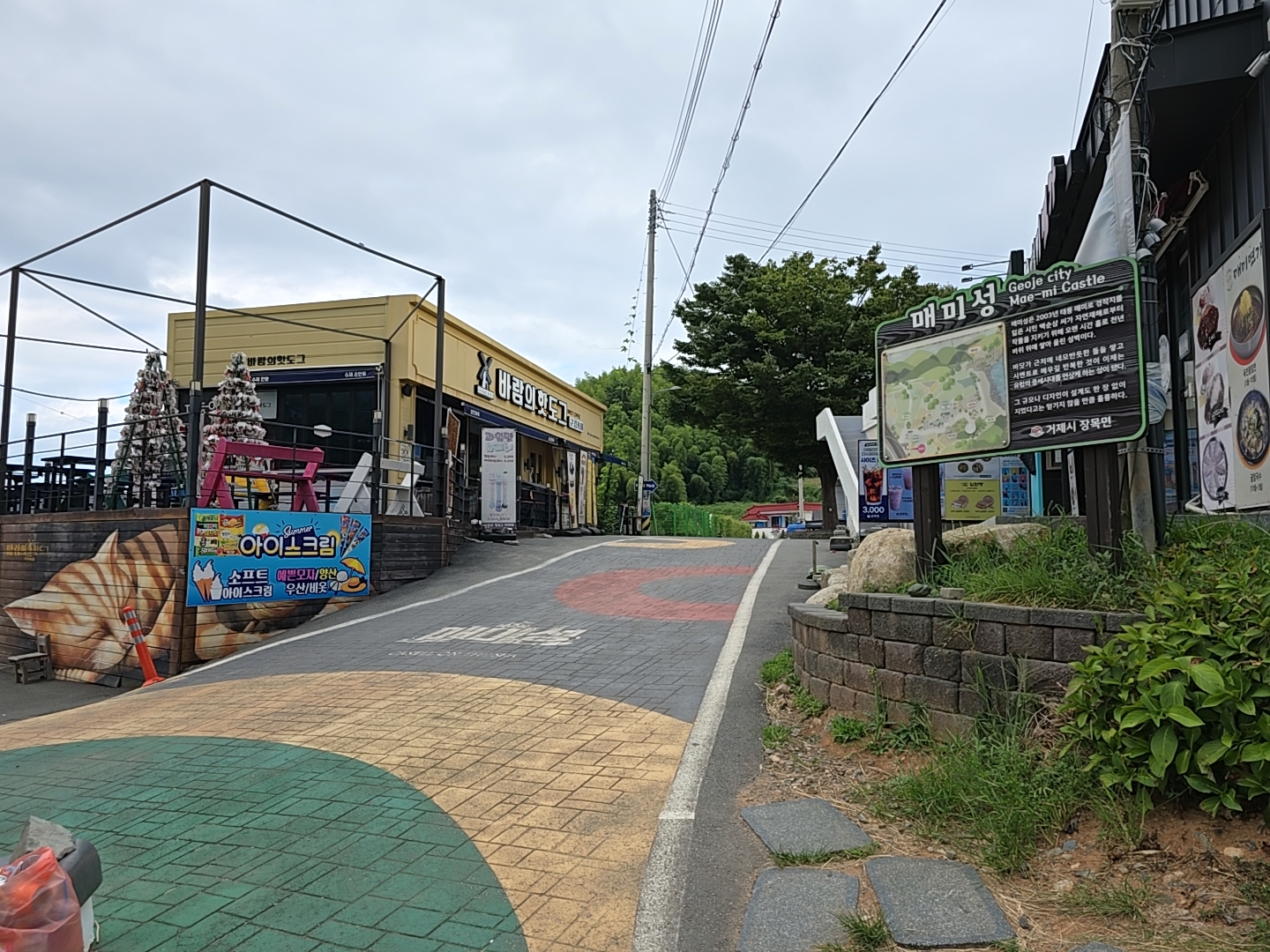 주차장에서 매미성을 내려가는 골목길 양쪽에는 먹거리 가게들이 많이 들어서 있다.