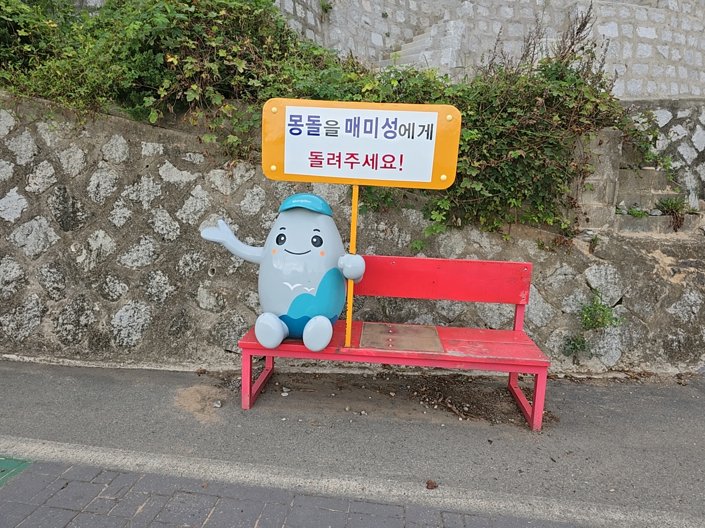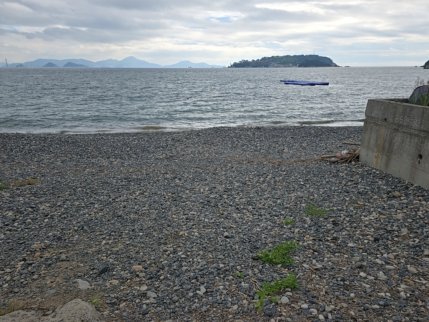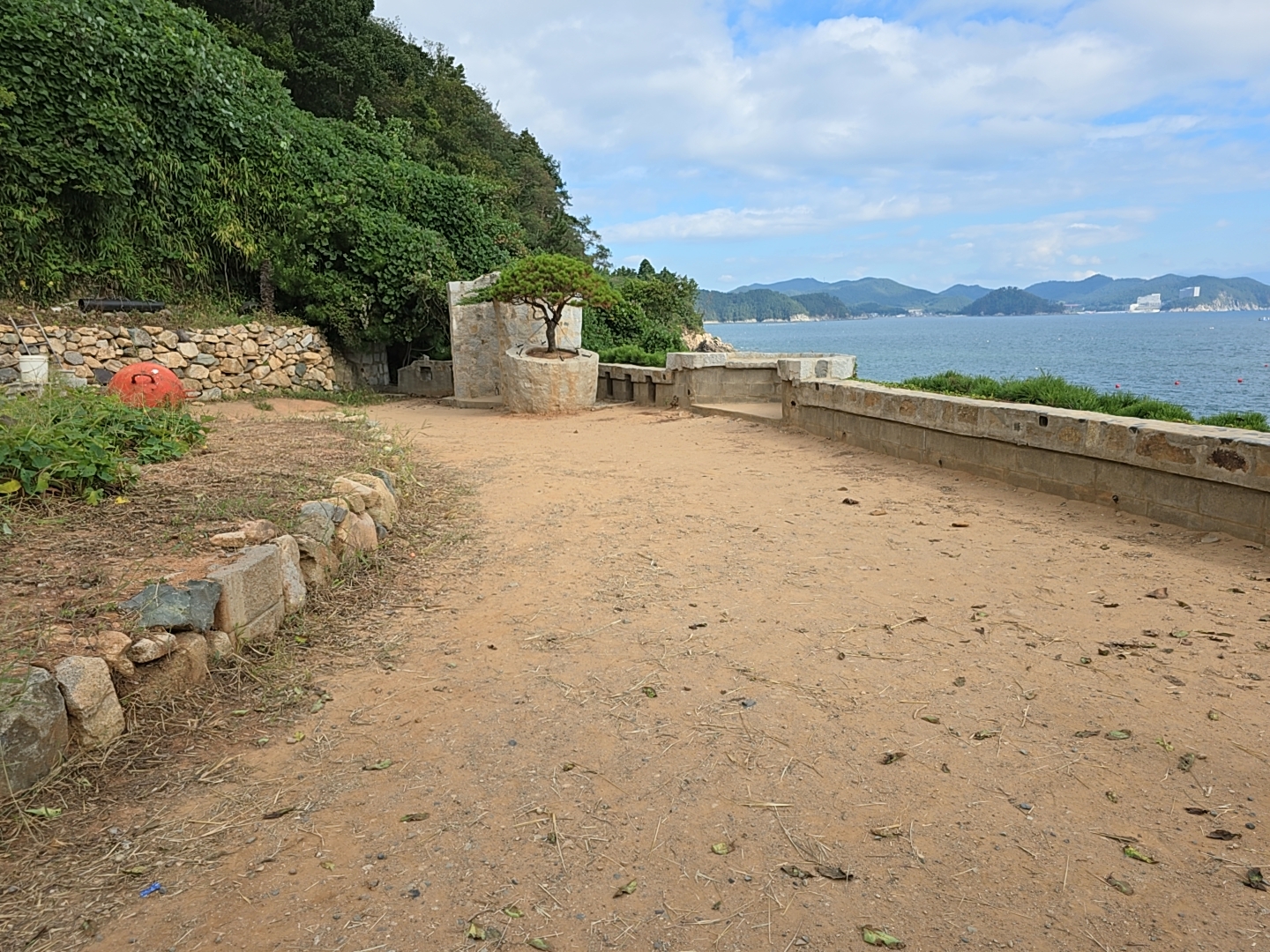 해변은 몽돌로 되어 있어서 보존이 필요하다.