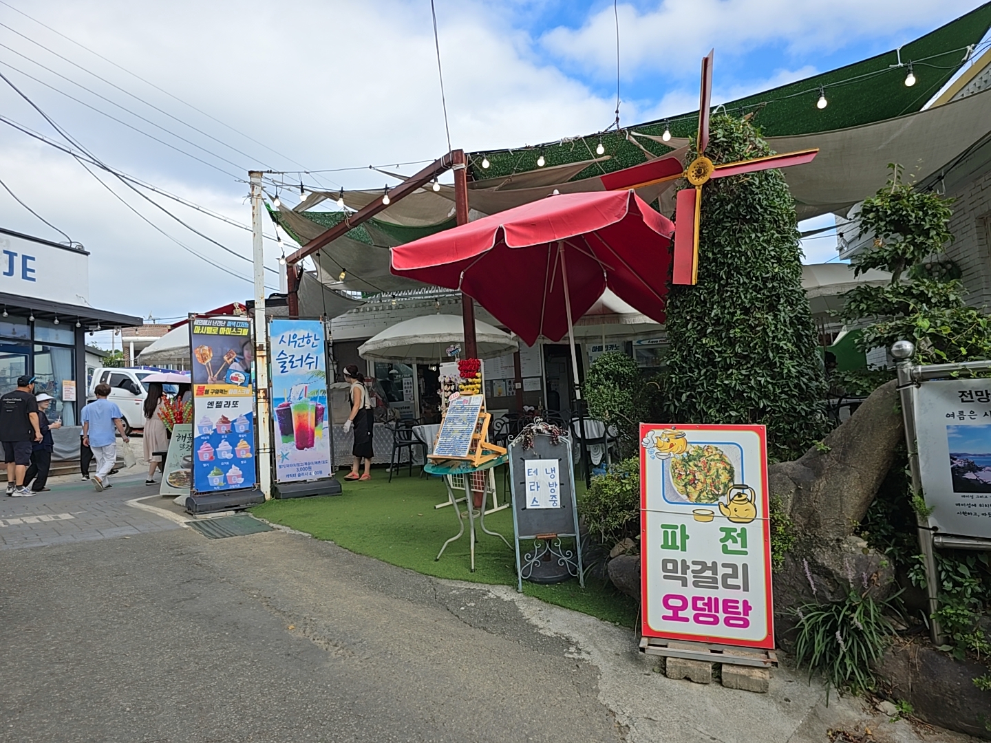 매미성 하나로 복항마을은 골목길을 따라 먹거리 가게들이 들어서 있다.