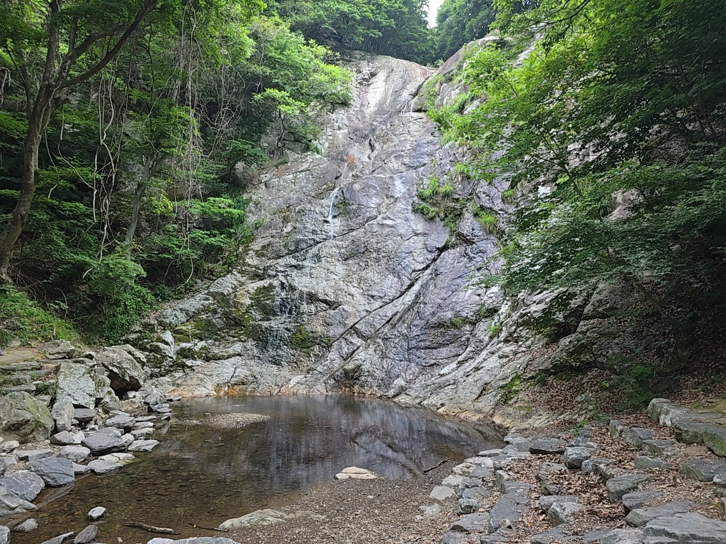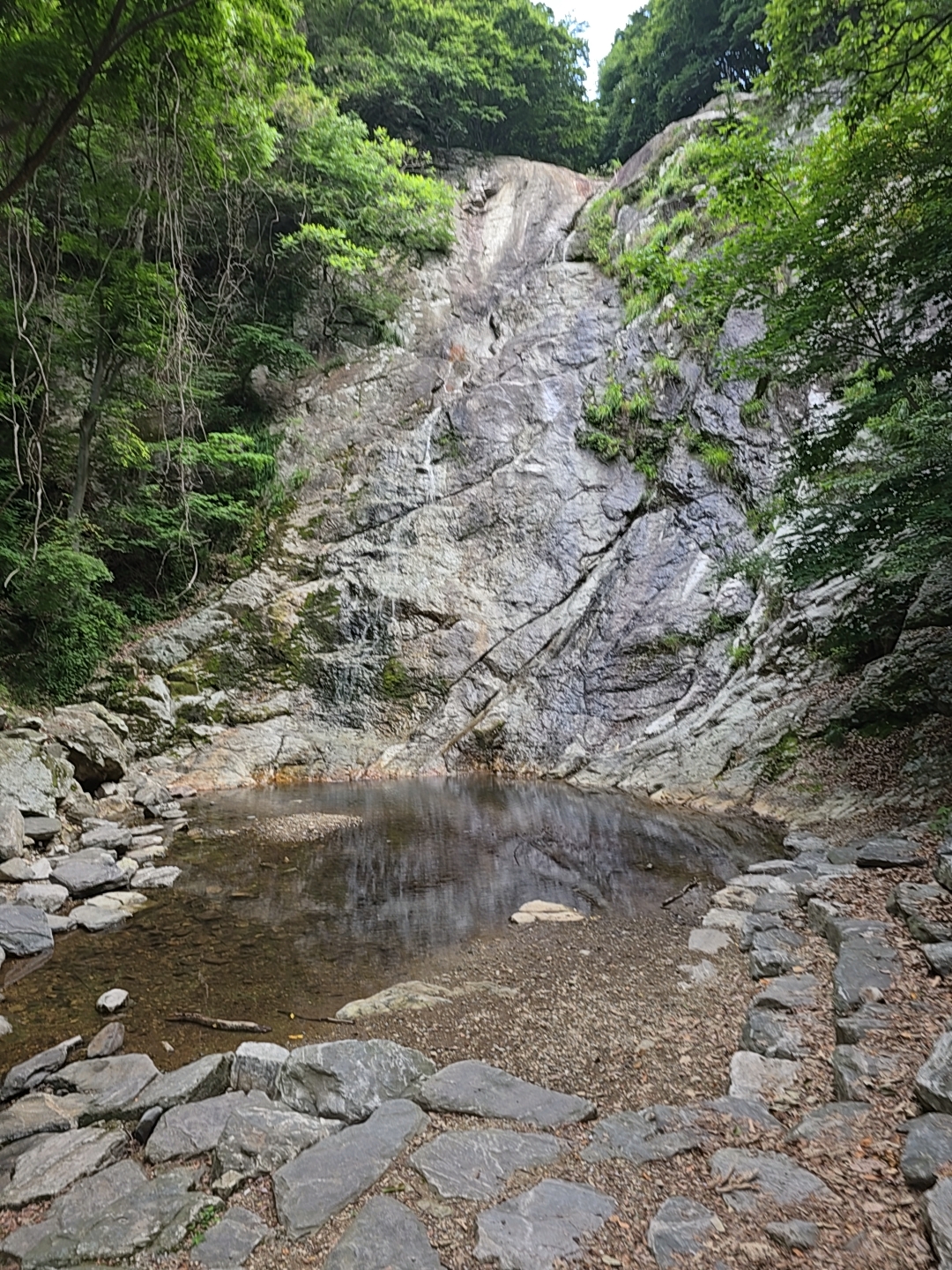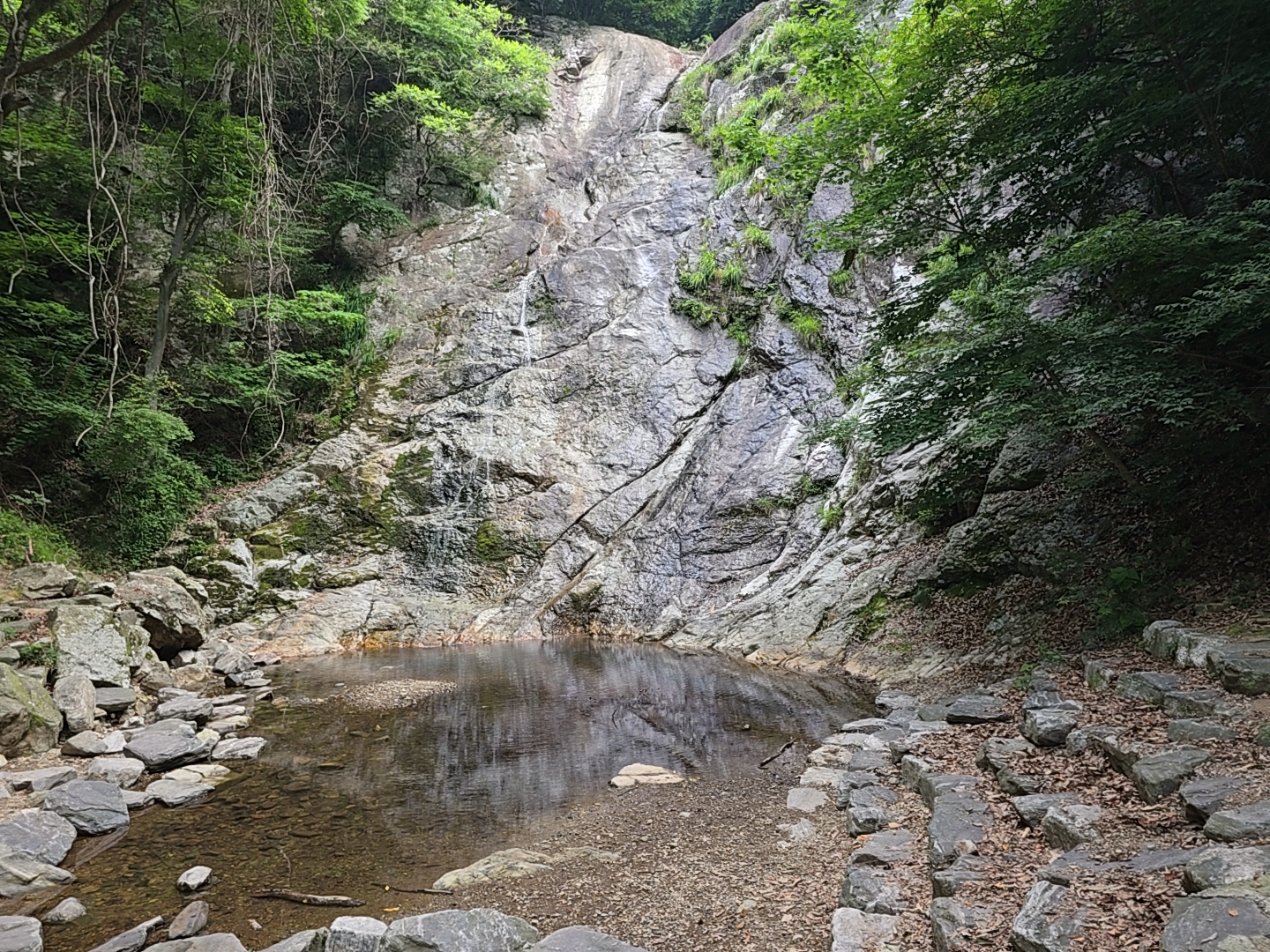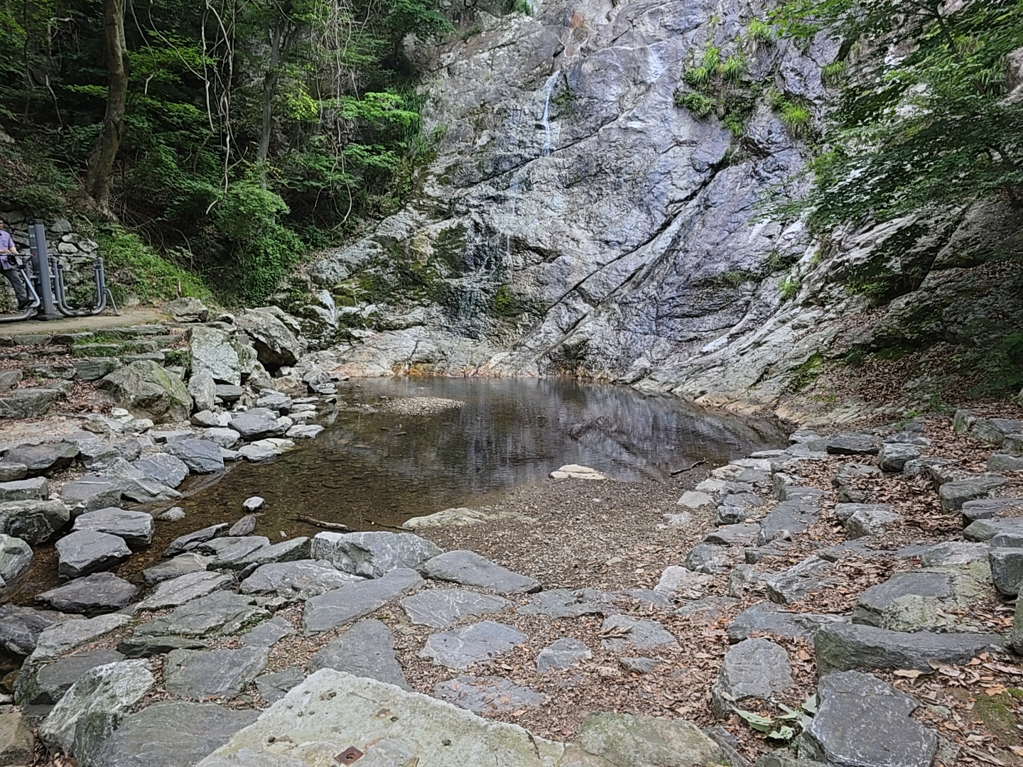 높이 2m 정도의 문동폭포는 비가 안온지 오래되서 수량이 적었다.