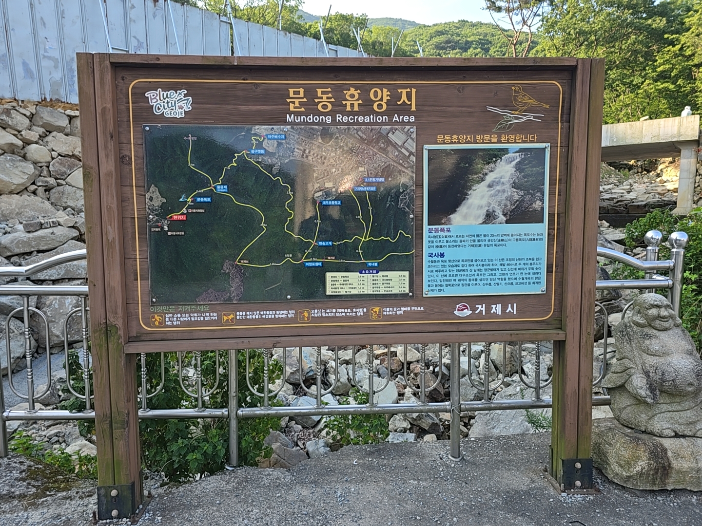 문동폭포를 찾으려고 갔는데 입구에는 문동휴양지 간판이 있었다.