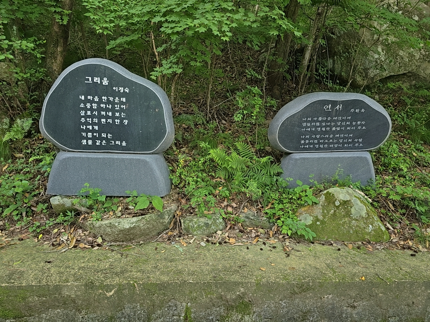과거에 문동폭포에서 시를 지었다고 해서 입구 오른쪽에는 바위에 새겨진 시들이 여러개 세워져 있었다.