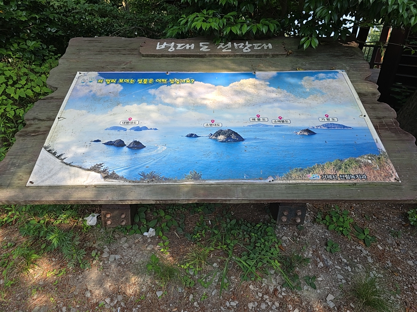 경상남도 거제시 남부면 저구마을에서 해안도로를 따라 근포마을을 지나가면 병대도 전망대가 나온다.