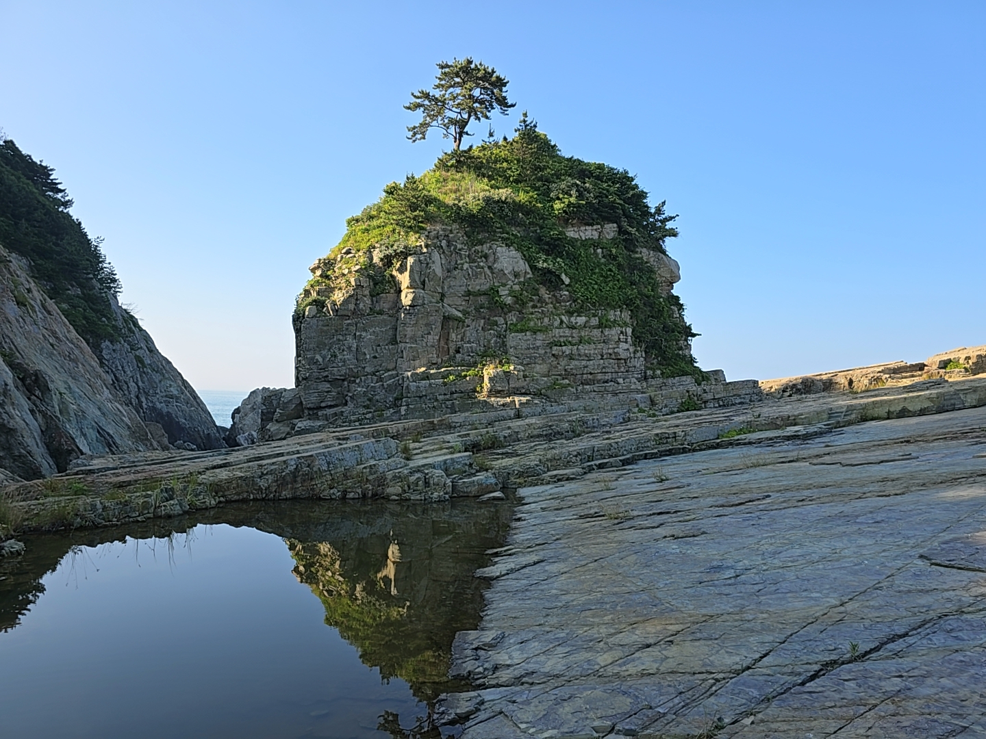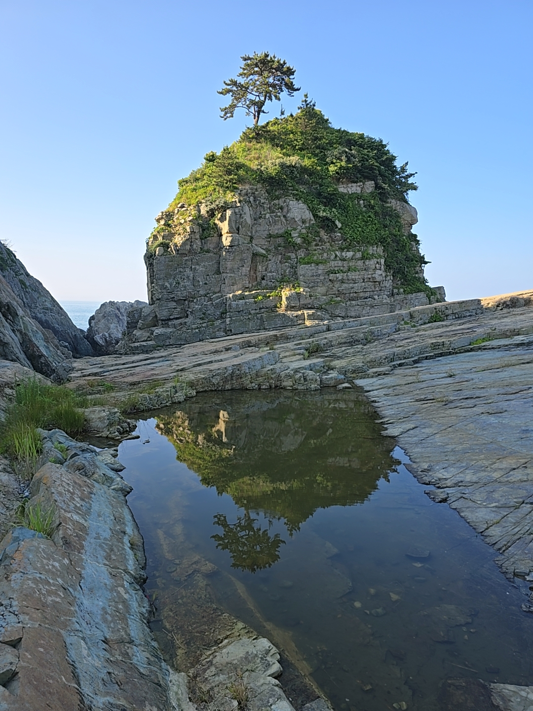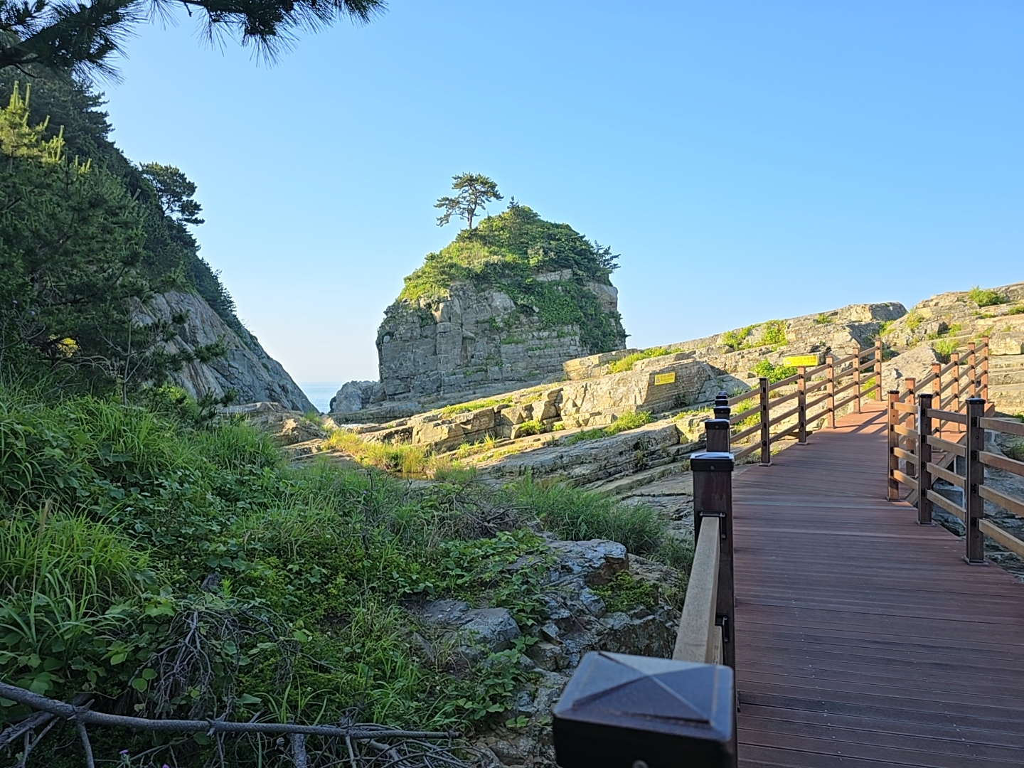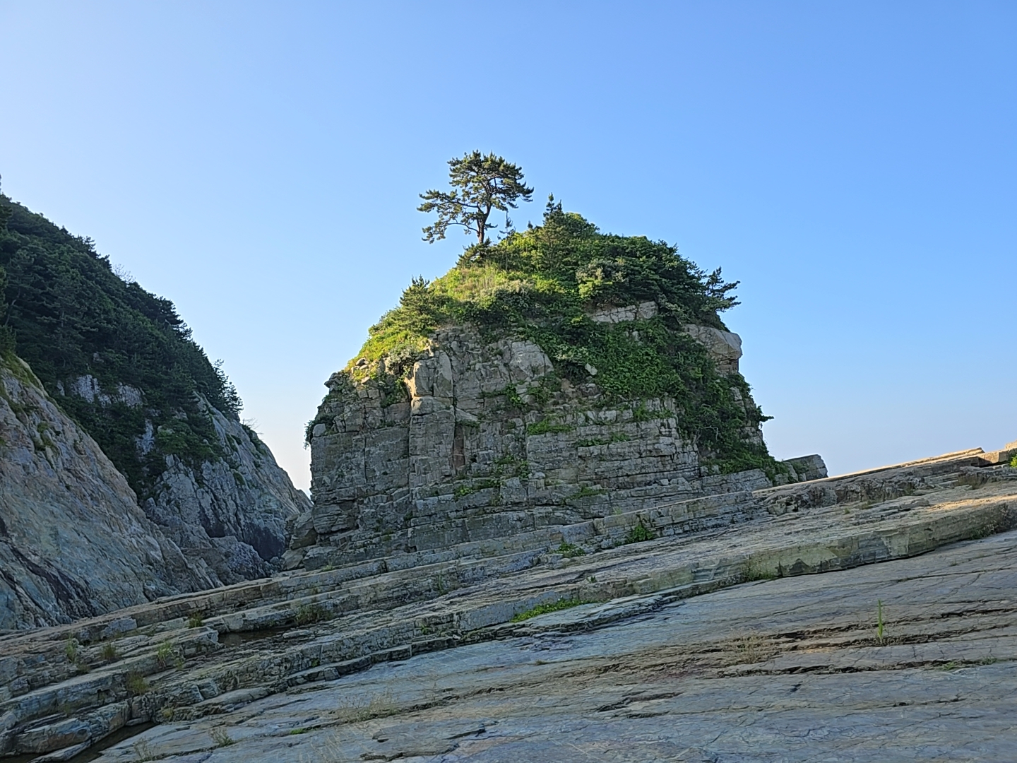 약 200m 정도 걸어가면 해안에 섬처럼 우뚝 솟은 돌기둥이 있다. 그리고 돌기둥 위에는 나무가 자라고 있다.