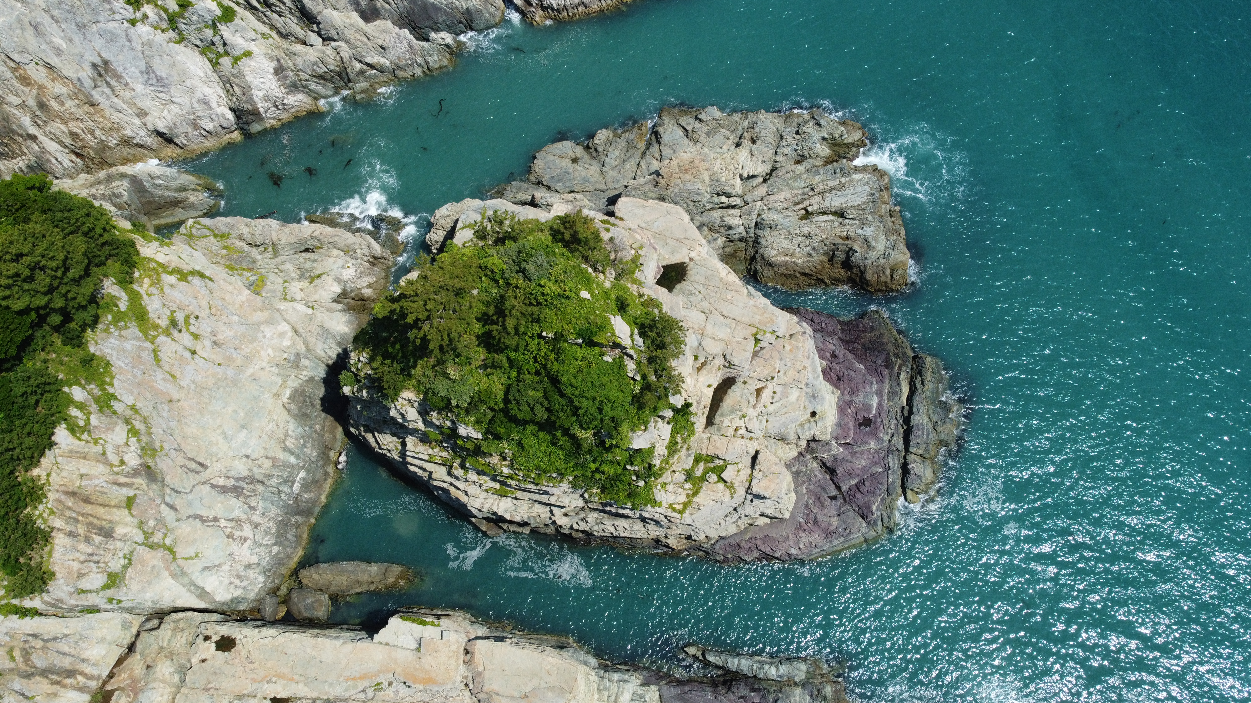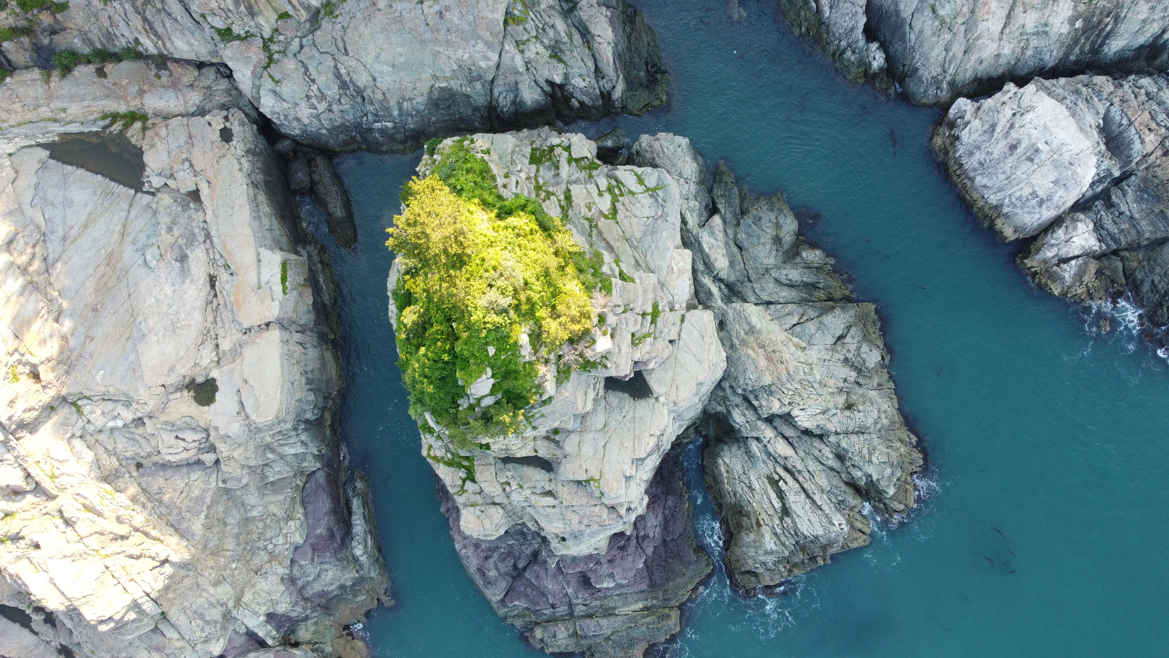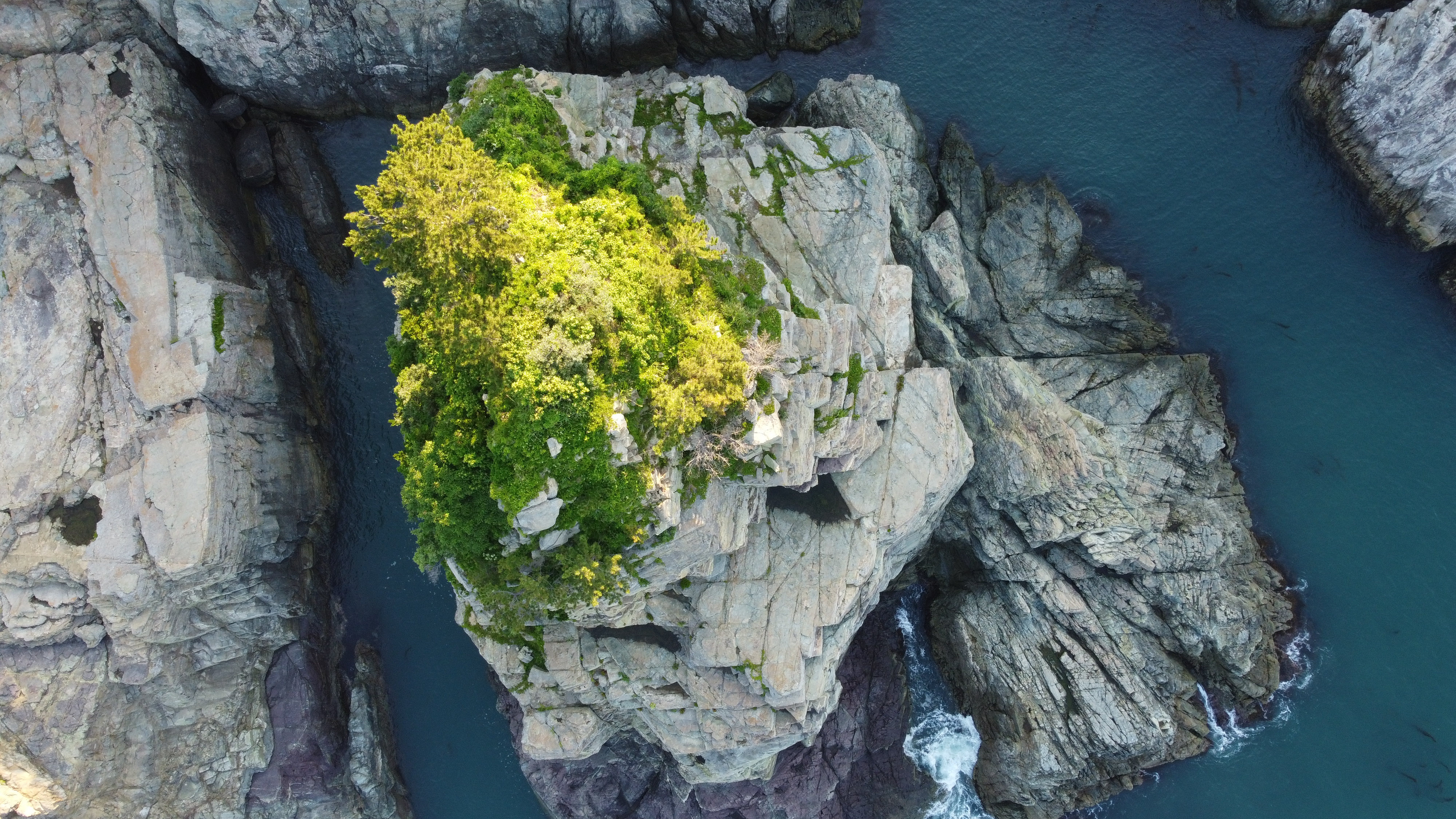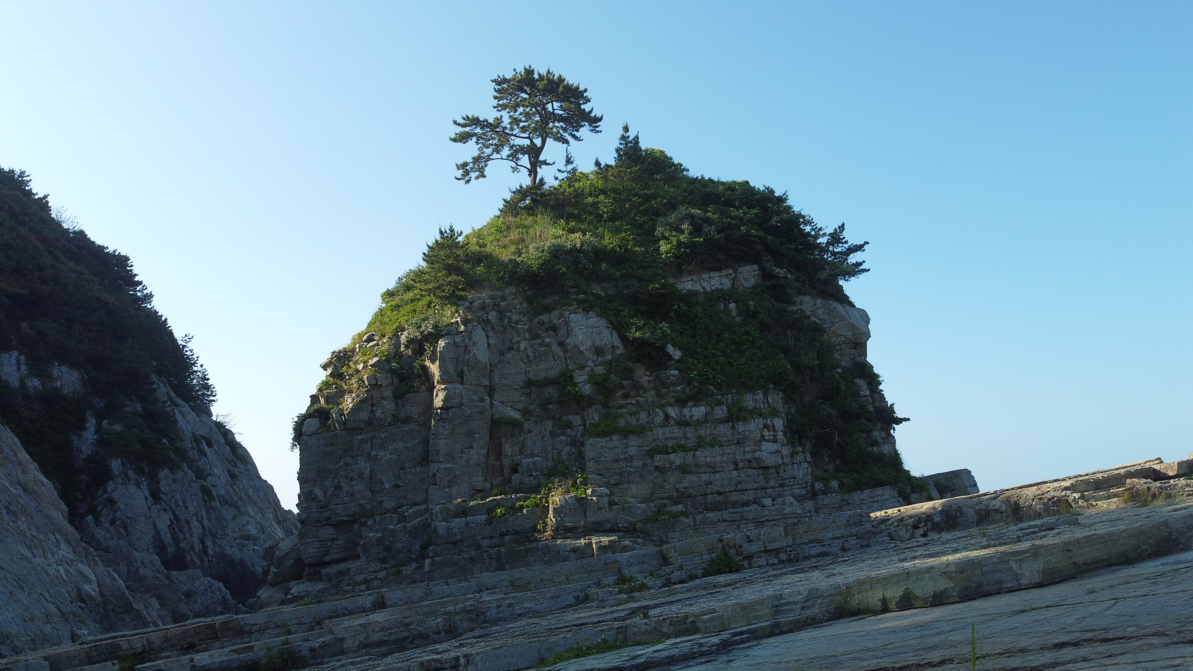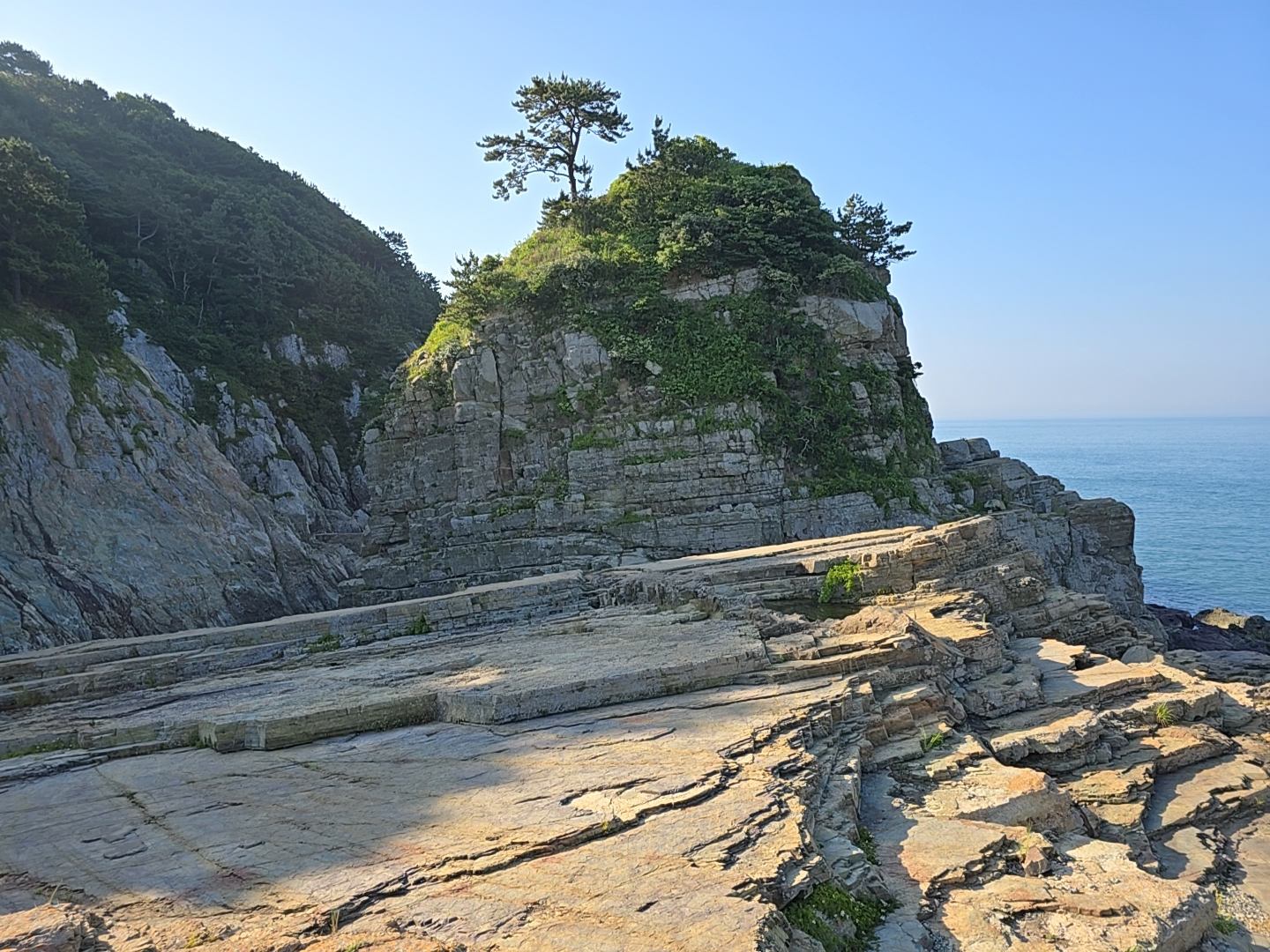 약 200m 정도 걸어가면 해안에 섬처럼 우뚝 솟은 돌기둥이 있다. 그리고 돌기둥 위에는 나무가 자라고 있다.