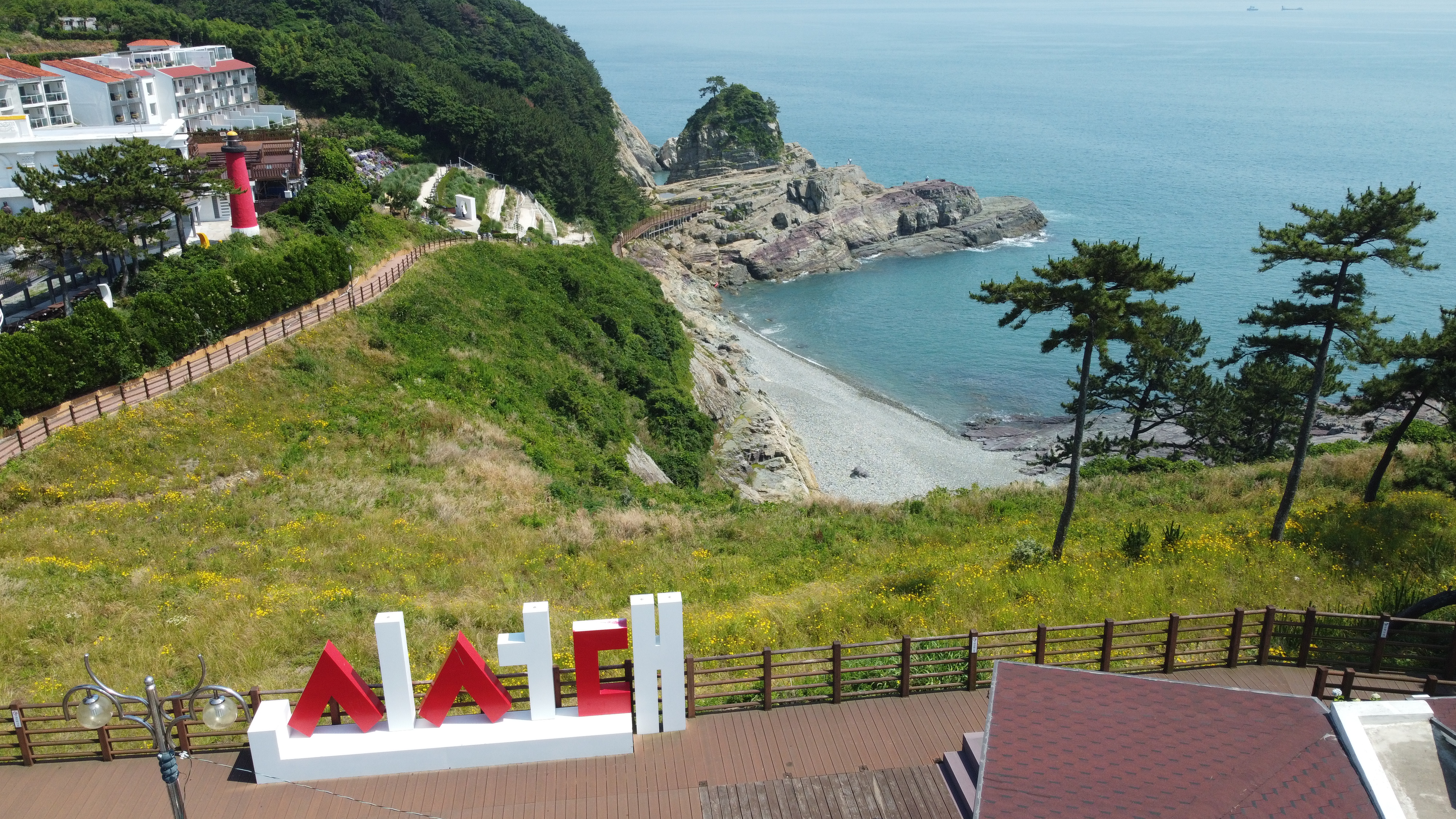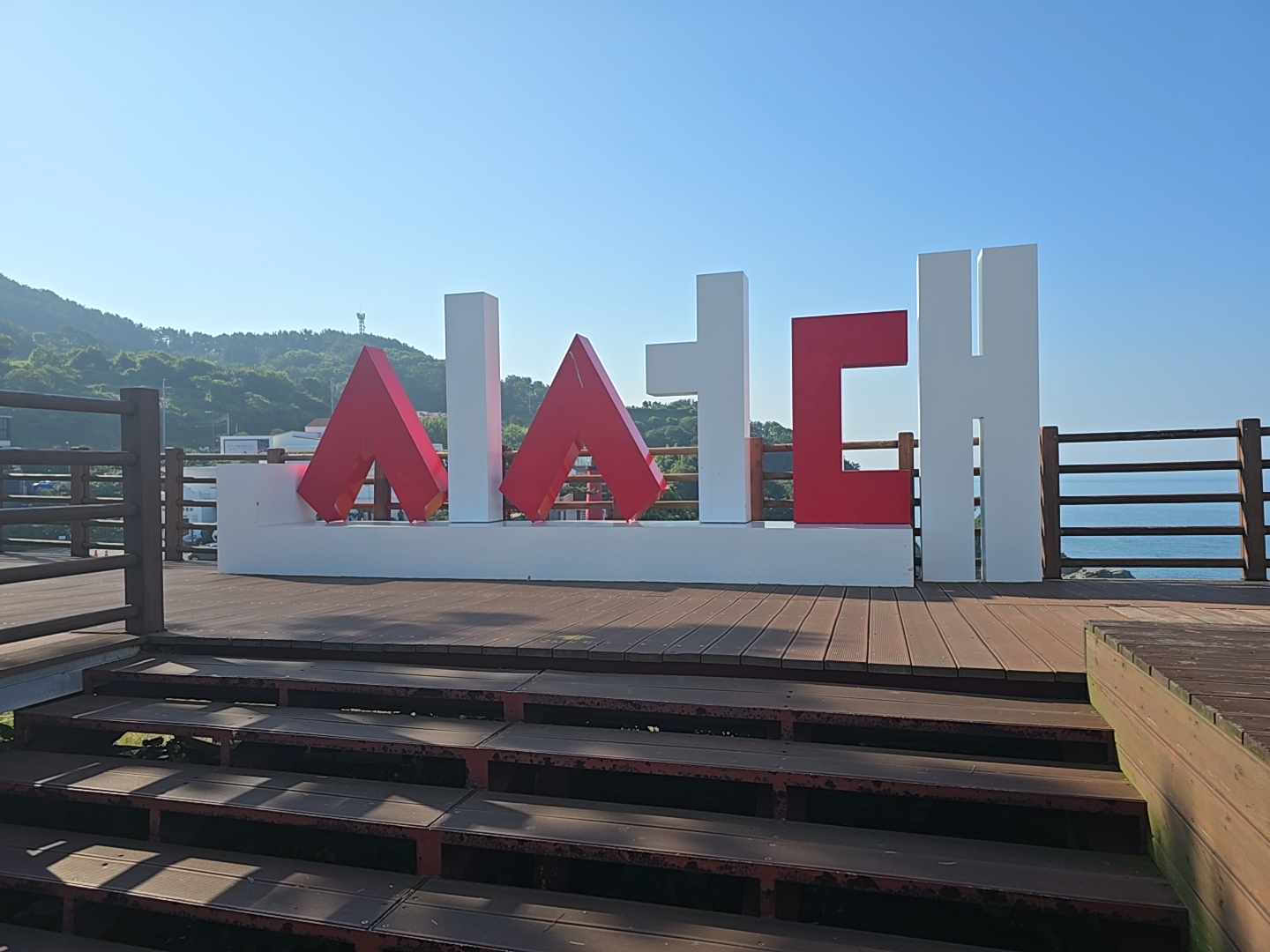 신선대 앞에서 도장포마을 입구에 있는 전망대를 본다.