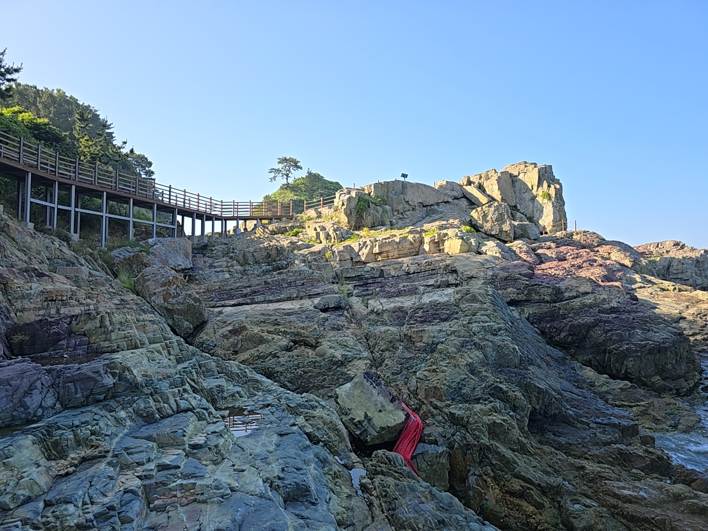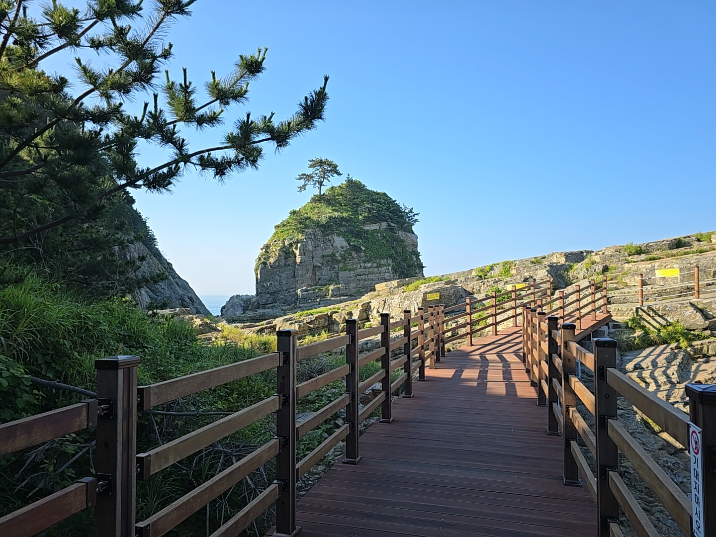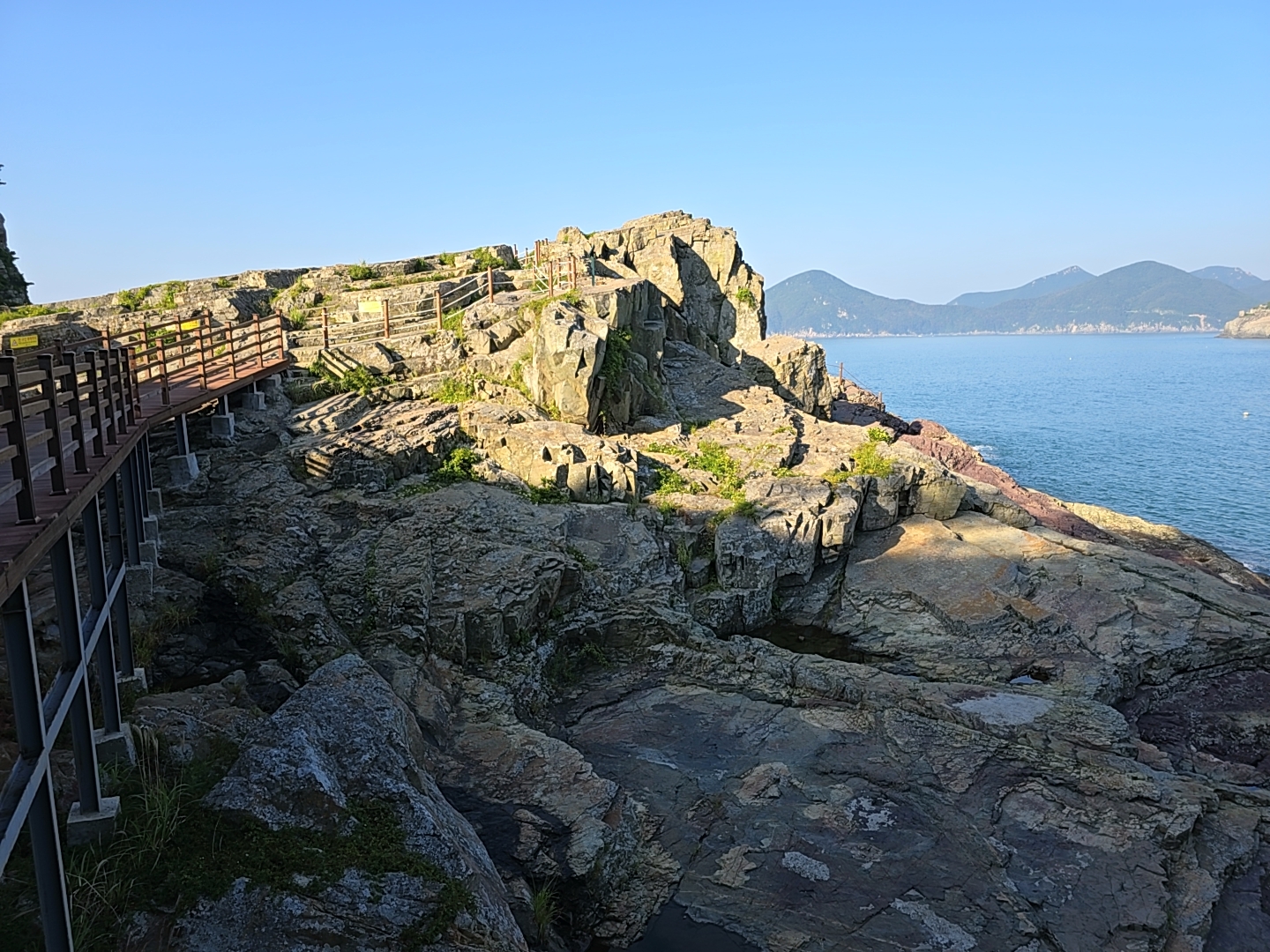 신선대는 도장포마을 반대편에 있으며 입구는 해금강테마박물관 바로 왼쪽에 바다로 내려가는 길이 있다.