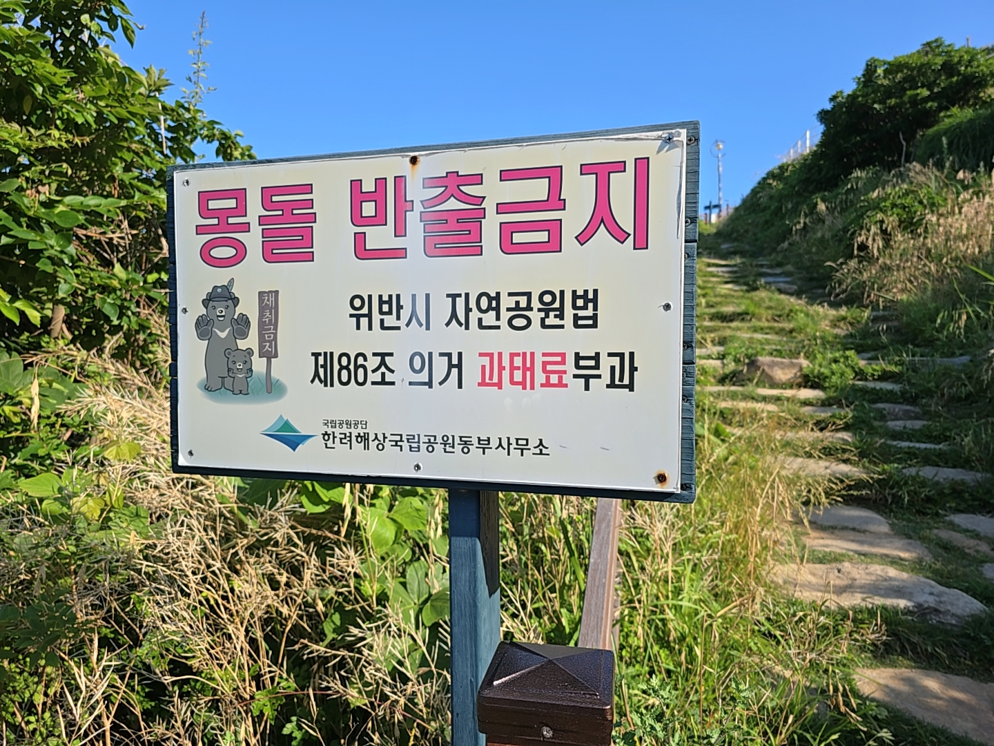 신선대에서 바닷가로 내려가면 몽돌해안이 있는데 이 몽돌을 가져가면 과태료가 부과된다.