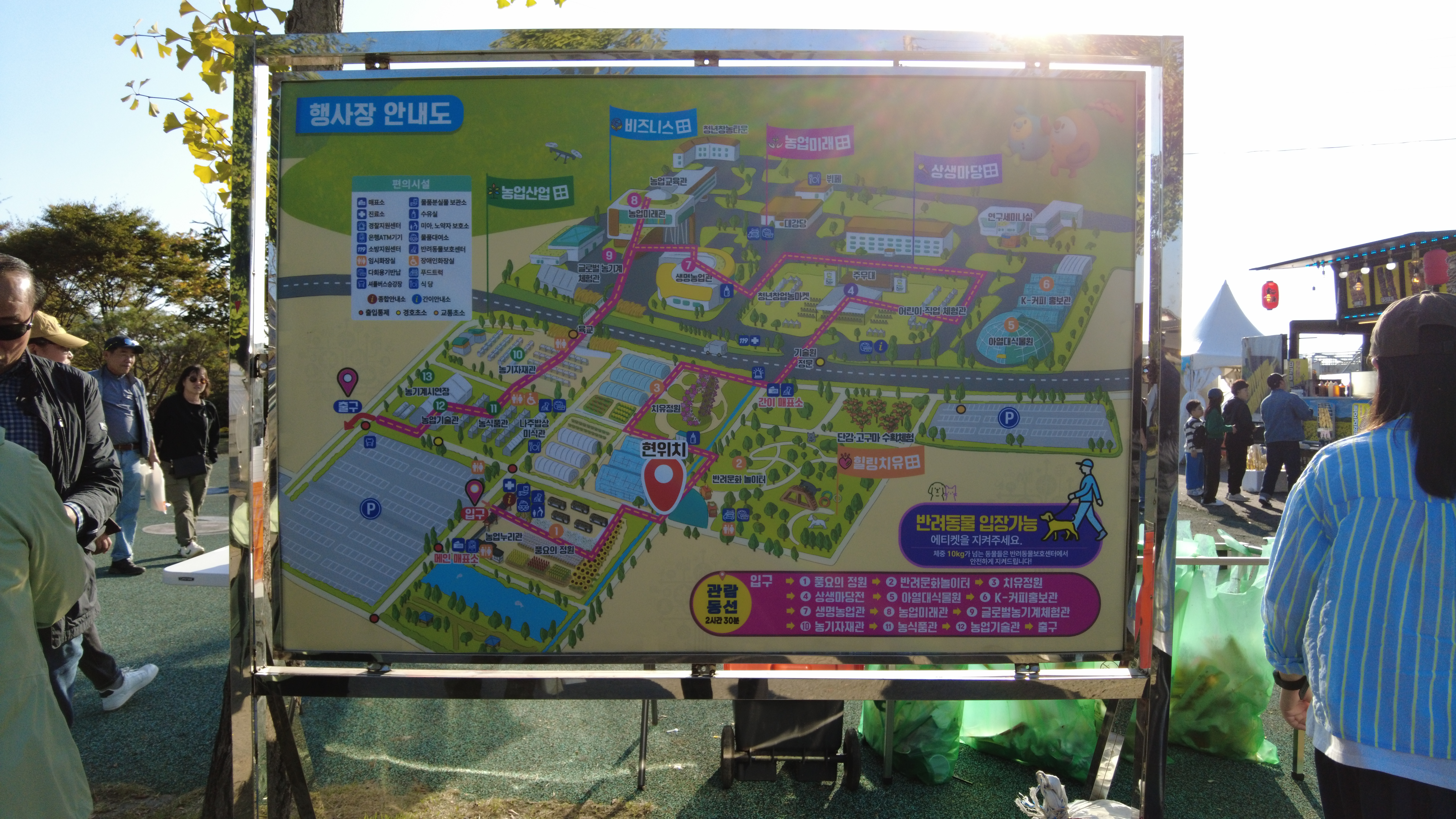 입구 - 풍요의 정원 - 반려문화놀이터 - 치유정원 - 상생마당전 - 아열대식물원 - K-커피홍보관 - 생명농업관 - 농업미래관 - 글로벌농기계체험관 - 농기자재관 - 농식품관 - 농업기술관 - 출구