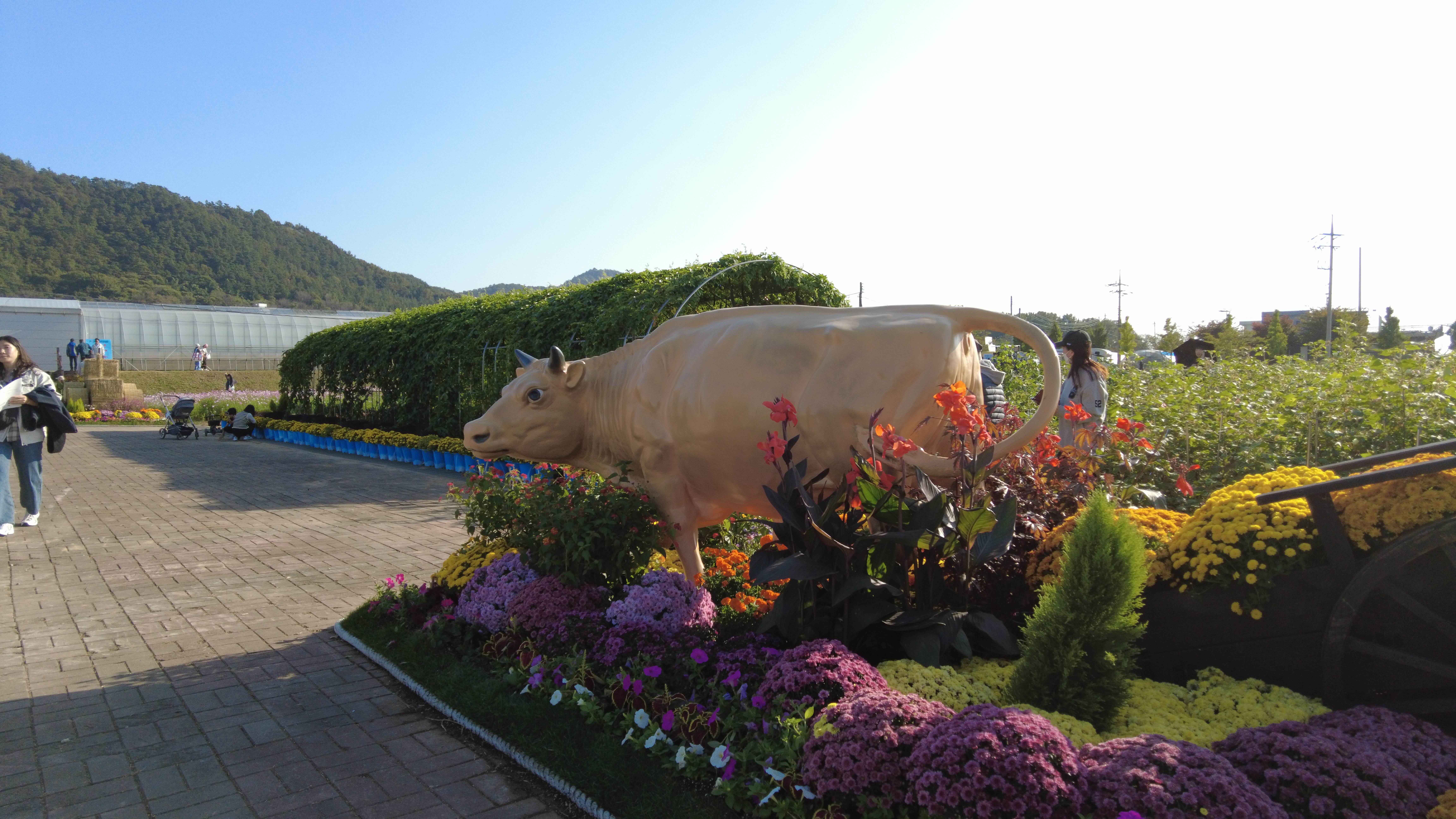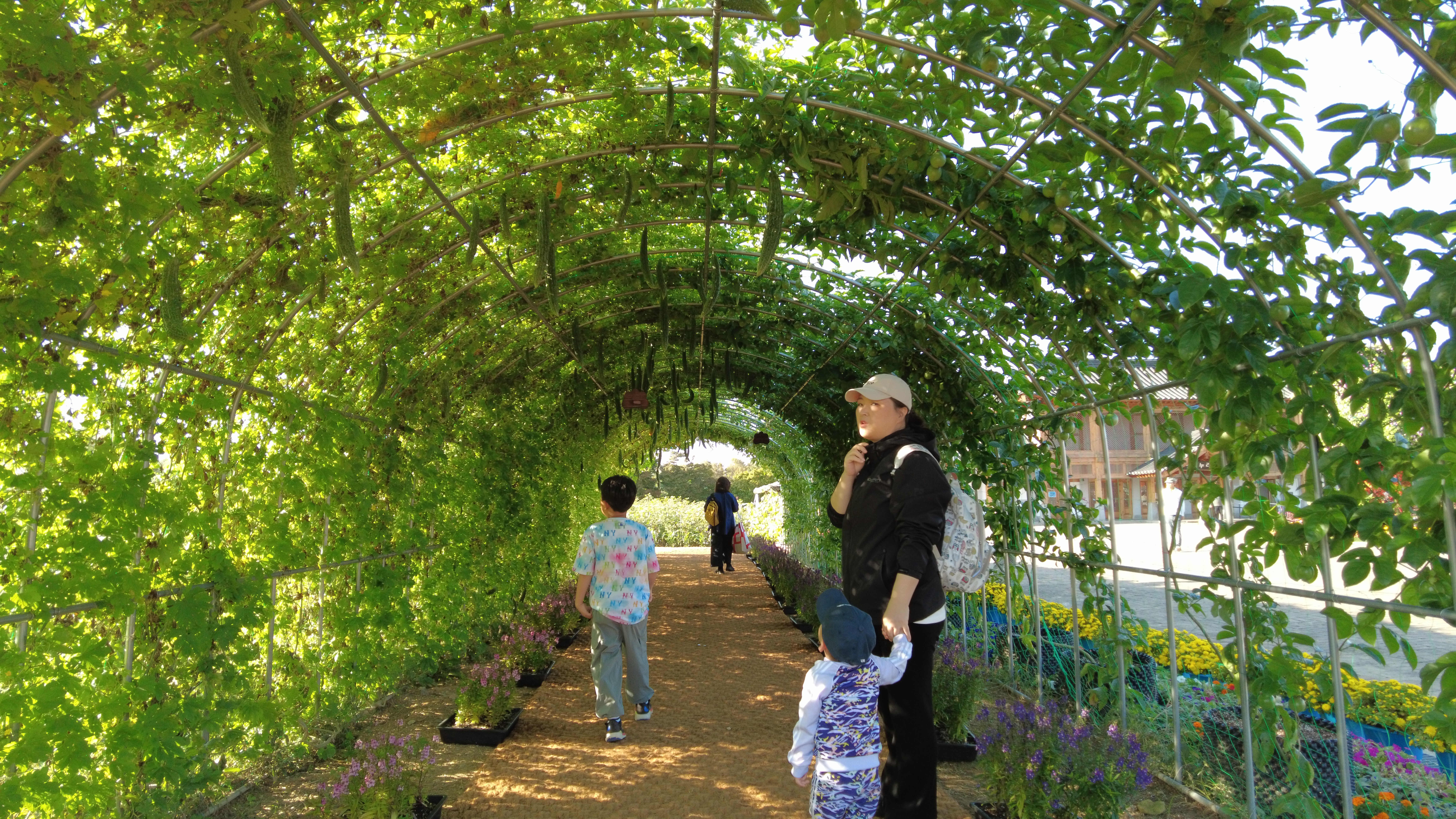 앞쪽에는 풍요의 정원에 조, 기장, 수수, 목화, 해바라기, 메밀, 코스모스 등이 산책로를 따라 심어져 있다.
