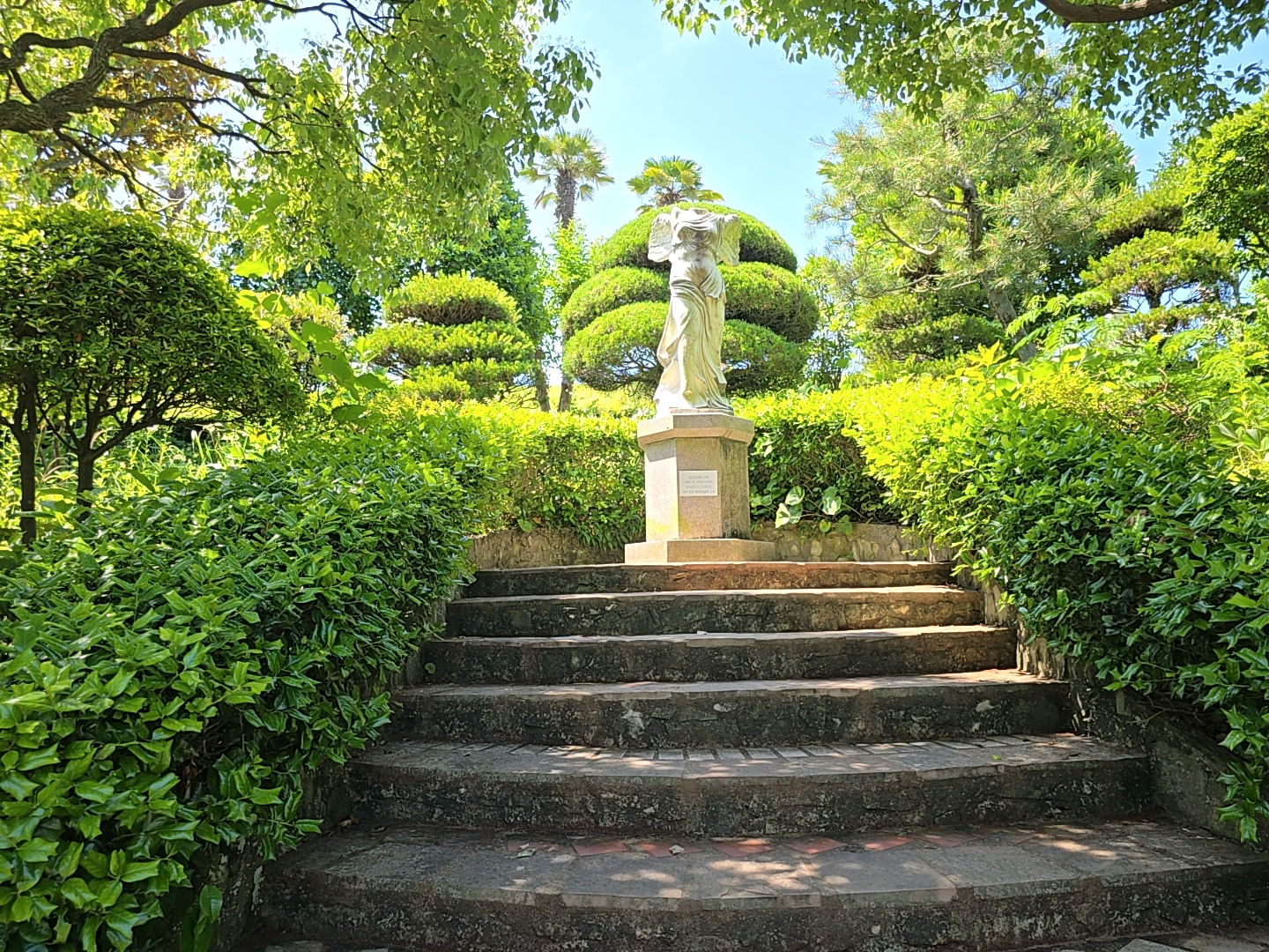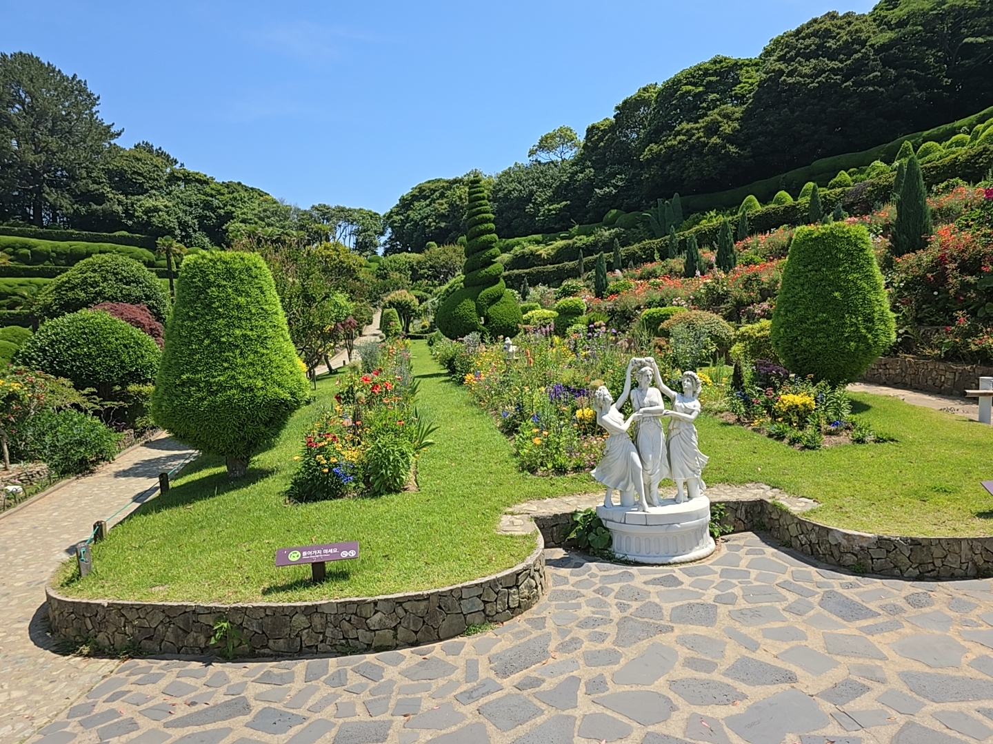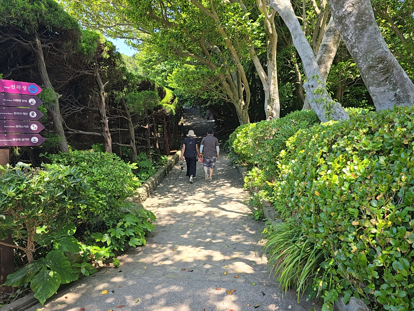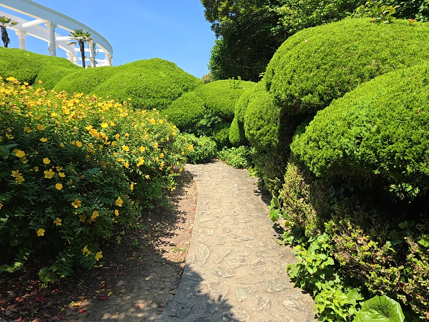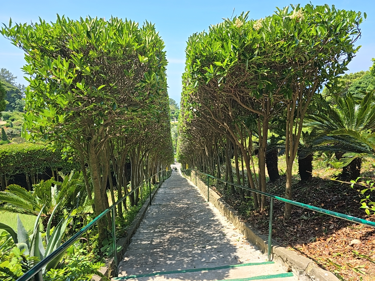 천국의 계단은 시원한 그늘터널을 만드는 조경아치와 다양한 모양으로 가꾸어진 정원수가 함께 어우러진 아름다운 테피스트리를 만들고 있습니다