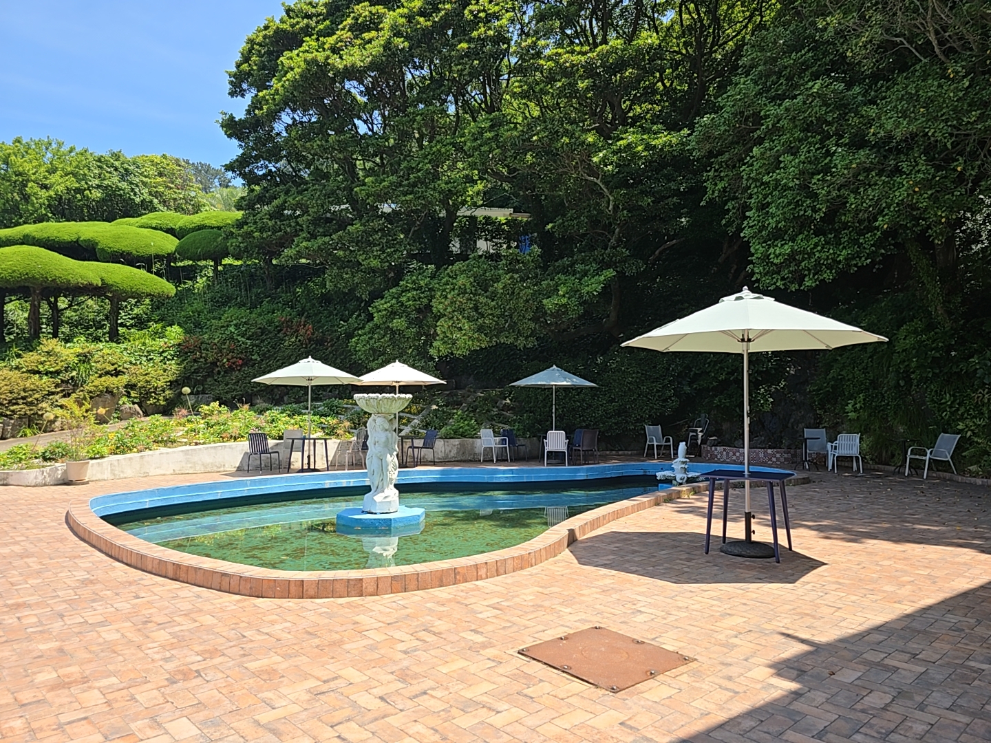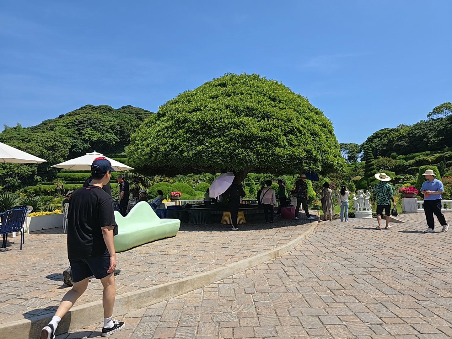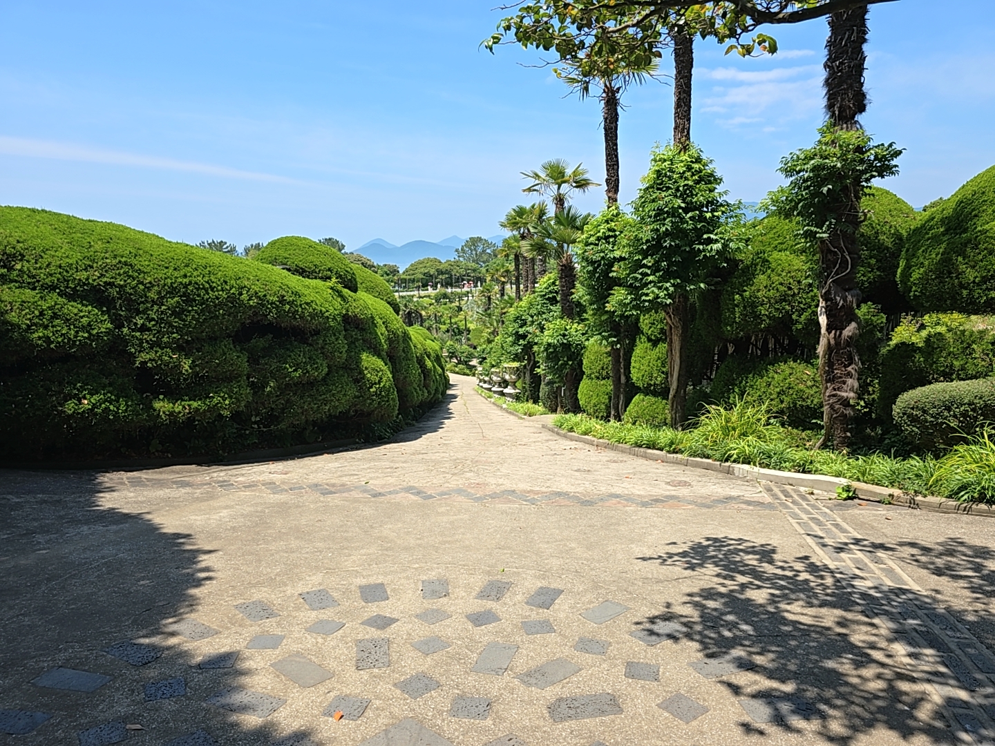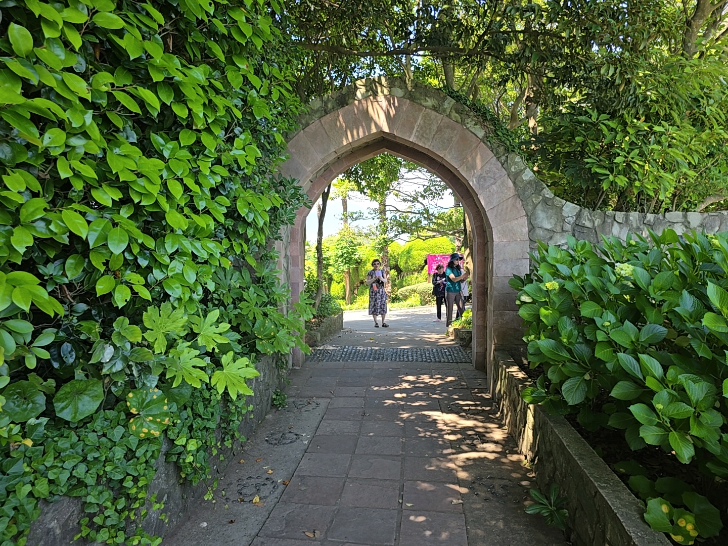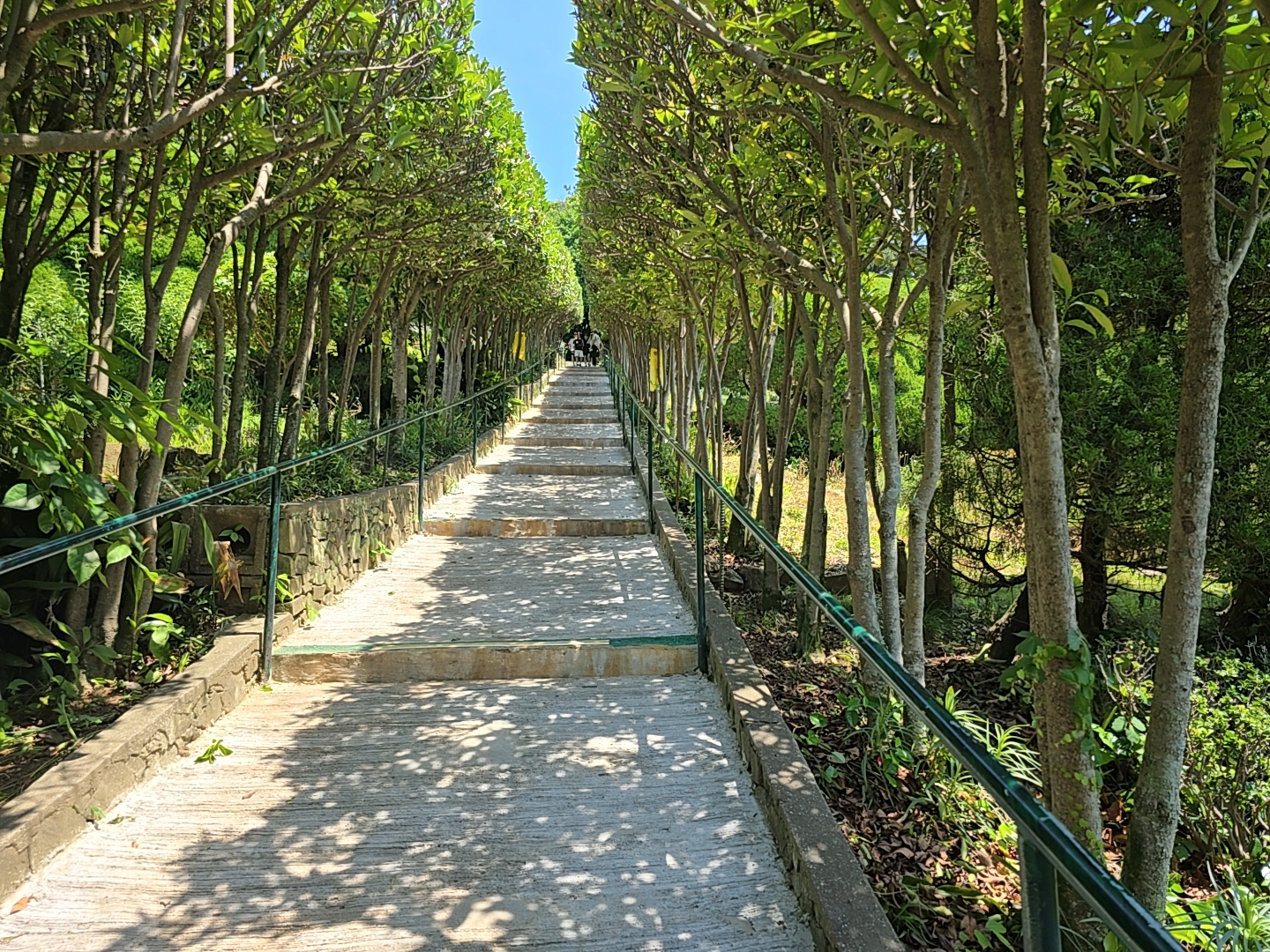 천국의 계단은 시원한 그늘터널을 만드는 조경아치와 다양한 모양으로 가꾸어진 정원수가 함께 어우러진 아름다운 테피스트리를 만들고 있습니다