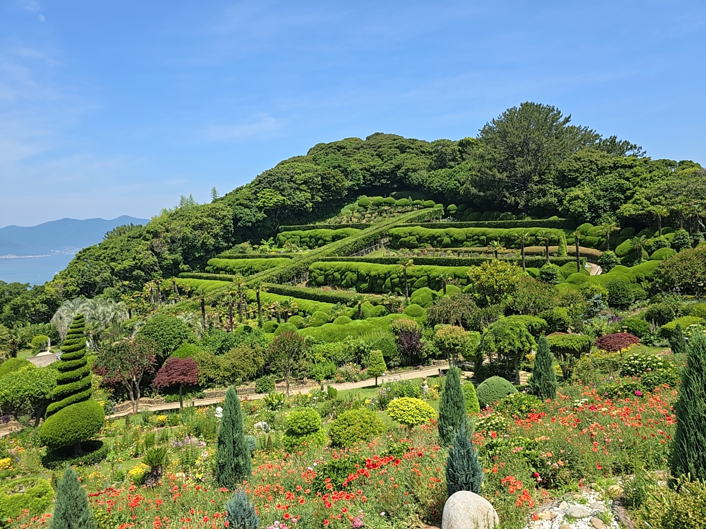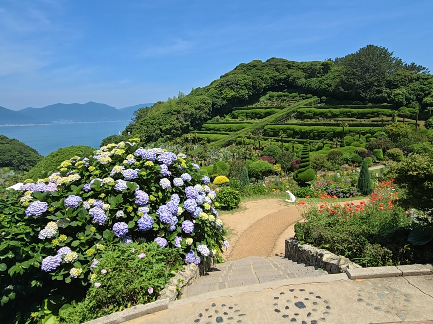 천국의 계단을 지나 가파른 비탈길을 오르면 외도보타니아의 모든 정원을 한눈에 볼 수 있는 가슴 벅찬 풍경이 펼쳐집니다