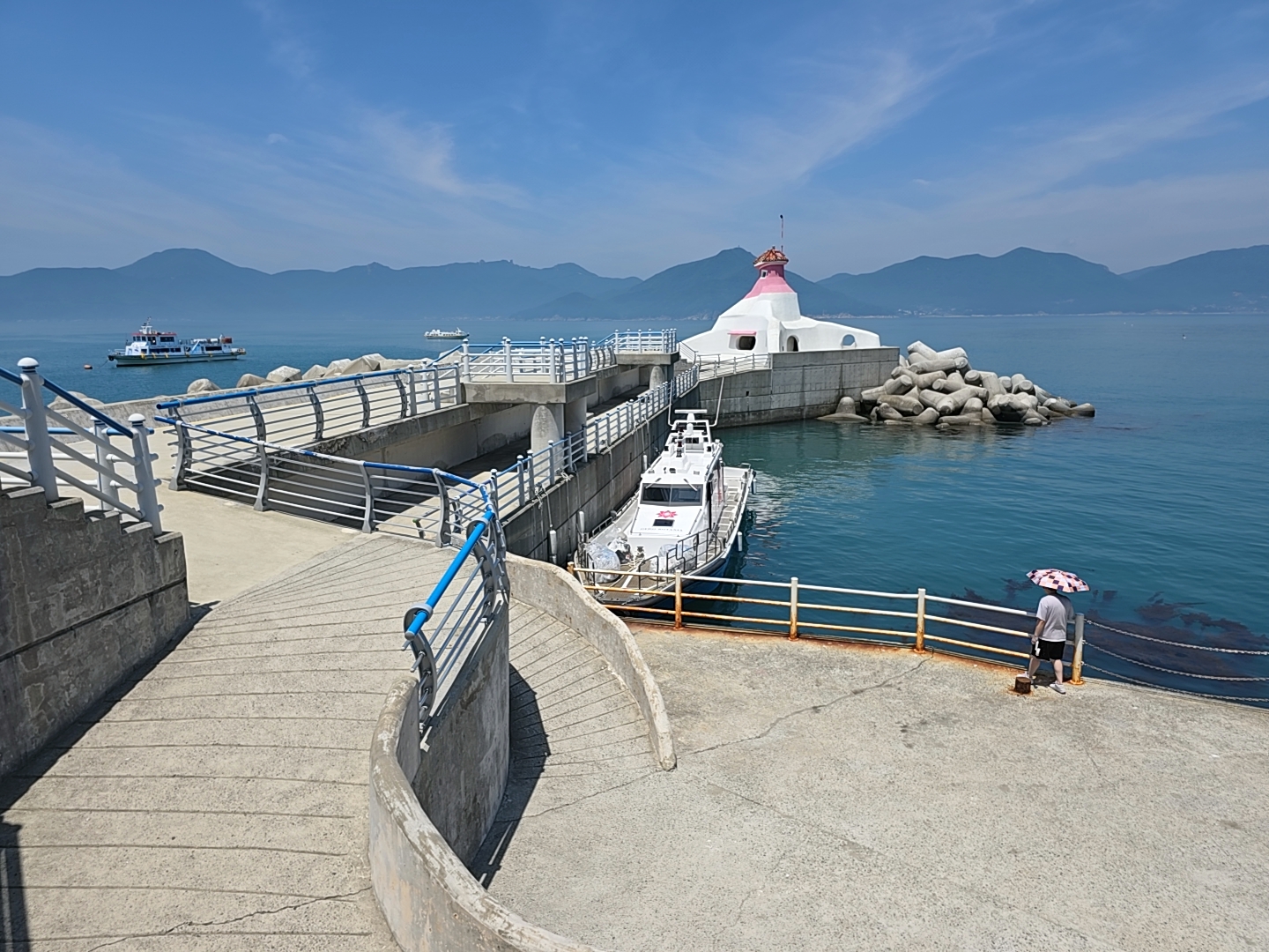 나는 도장포에서 유람선을 탔는데 지세포에서 출발한 유람선도 거의 동시에 도착했다.