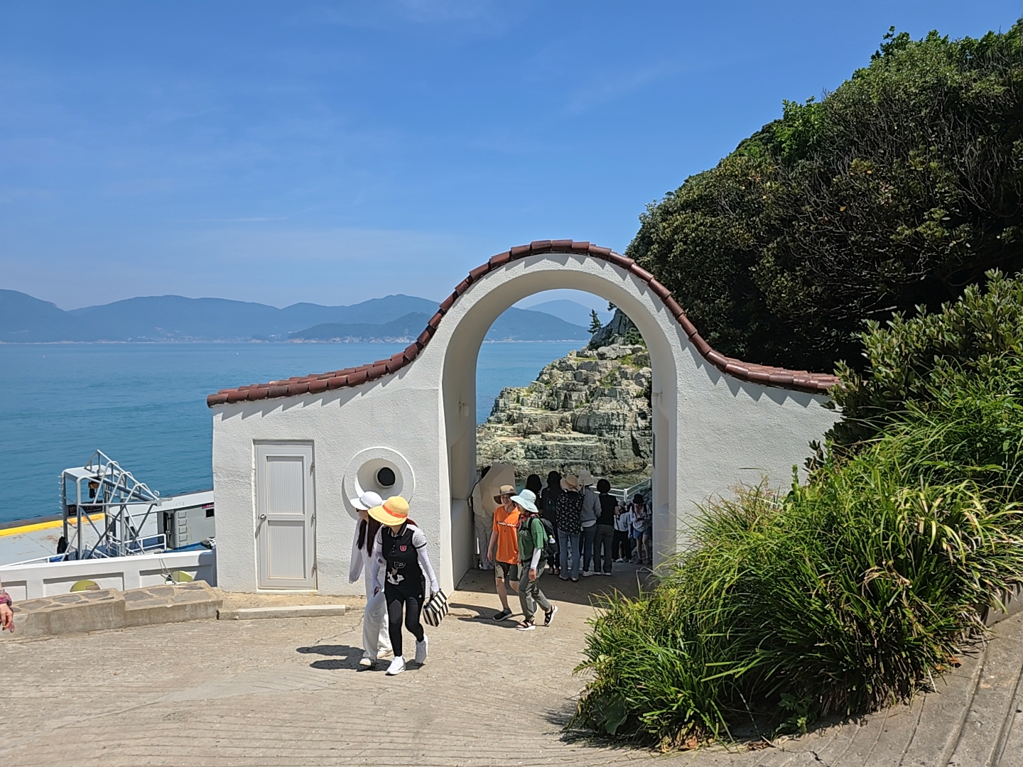 유람선에서 내리면 아치형 문을 통과한다.