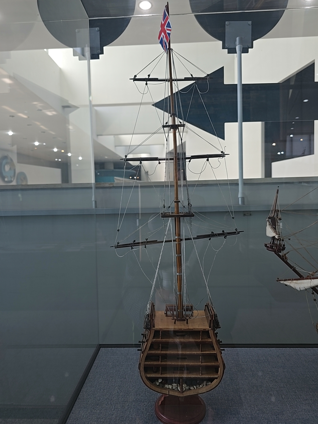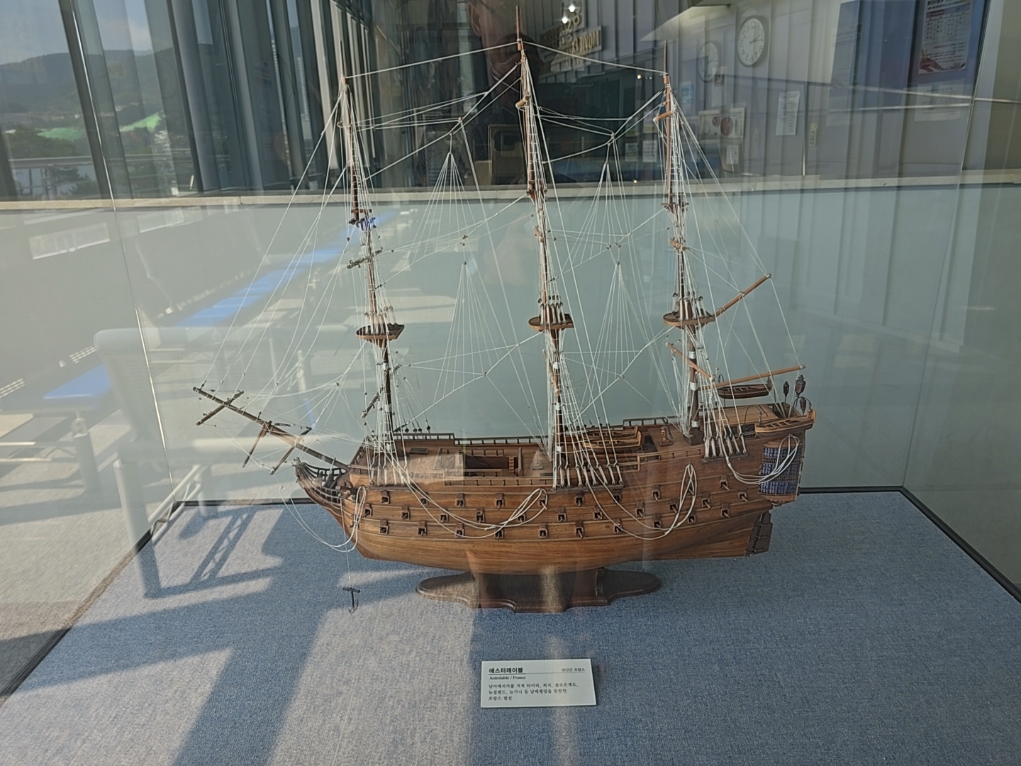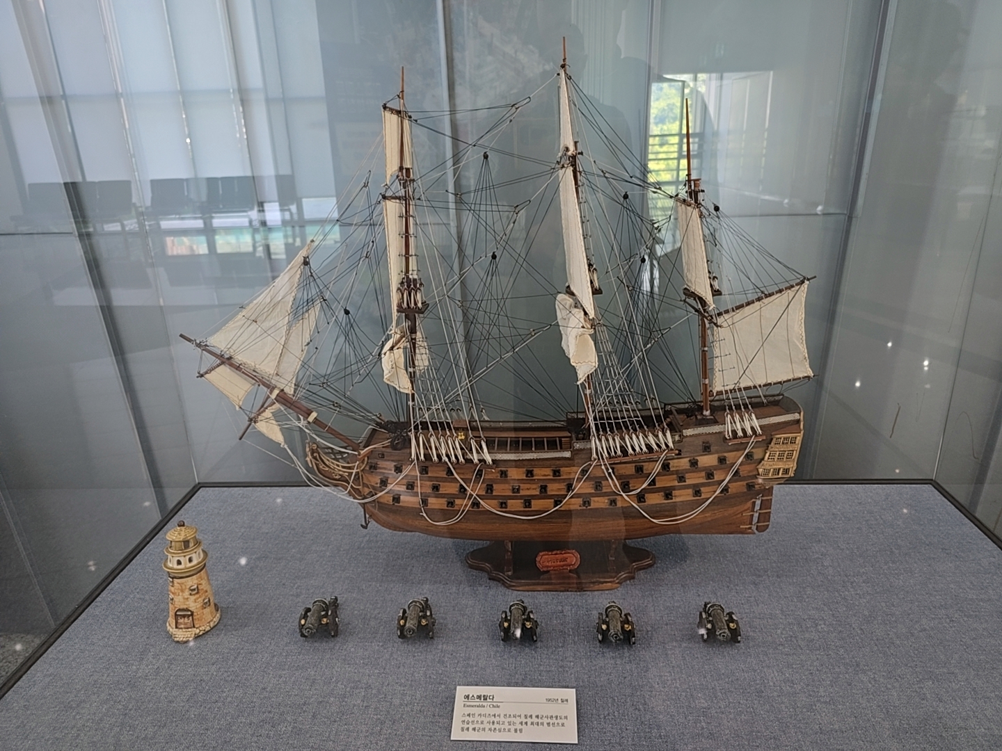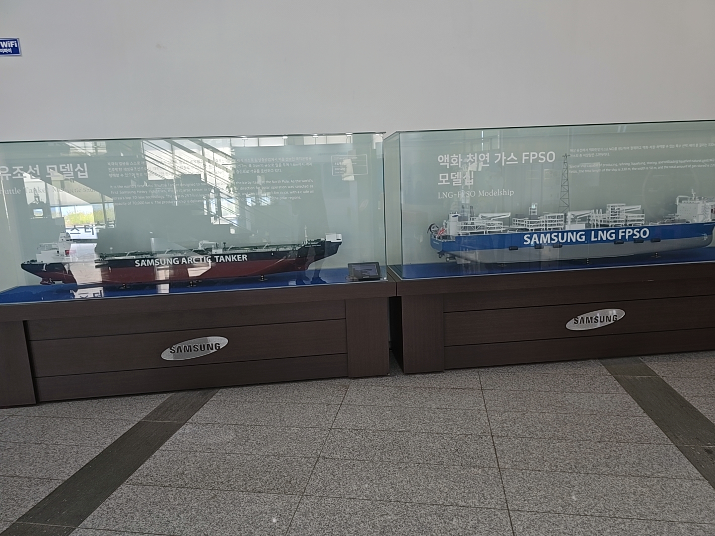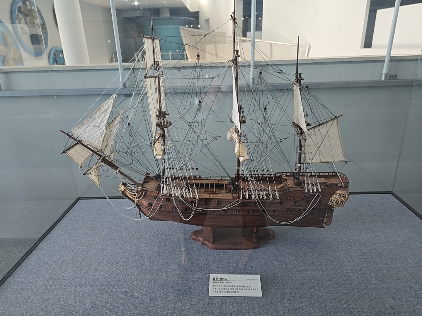 거제조선해양문화관 2관 2층에 먼저 올라왔는데 2층 입구에는 과거와 현대의 배 조형물들이 전시되어 있었다.