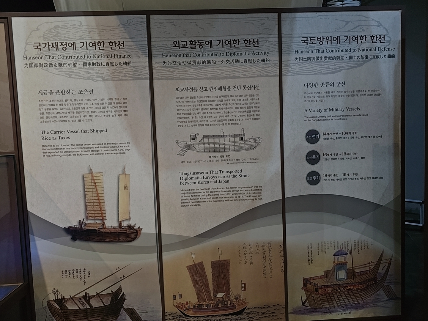 한선이란 우리나라 배만이 가진 독특한 만듦새와 생김새를 갖춘 배를 말한다., 서해를 중심으로 해상활동이 이루어진 역사에 따라 배 역시 서해안에서 항해하기에 적합한 형태로 발전하였다. 즉 물의 깊이가 얕고 밀물과 썰물의 차이가 심한 서해안의 지형적 특색을 고려하여 배가 만들어진 것이다. 이러한 한국의 전통 배들은 배의 형태나 조성연대를 막론하고 비슷한 형태를 지닌다. 밑바닥이 평평하여 얕은 물에서도 운행할 수 있고 바닥과 옆면을 연결한 후 장쇠(가룡목)을 설치하여 배가 튼튼한 것 등이 바로 그것이다. 이러한 특징은 서양이나 중국, 일본과는 다른 것으로서 우리 선조가 지리적, 지형적 조건에 걸맞도록 독특하게 창한하고 발전시킨 것이다.
