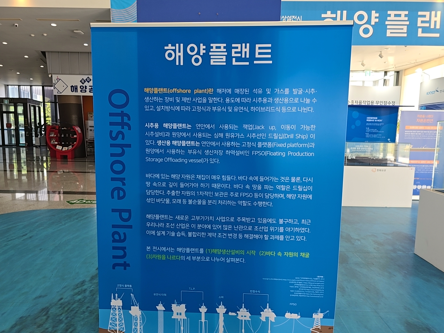 바다에 있는 해양 자원은 채집이 매우 힘들다. 바다 속에 들어가는 것은 물론, 다시 땅 속으로 깊이 들어가야 하기 때문이다. 바다 속 땅을 파는 역할은 도릴십이 담당한다. 추출한 자원의 1차적인 보관은 주로 FPSO 등이 담당하며 해양 자원에 섞인 바닷물, 모래 등 불순물을 불리 처리하는 역할도 수행한다.