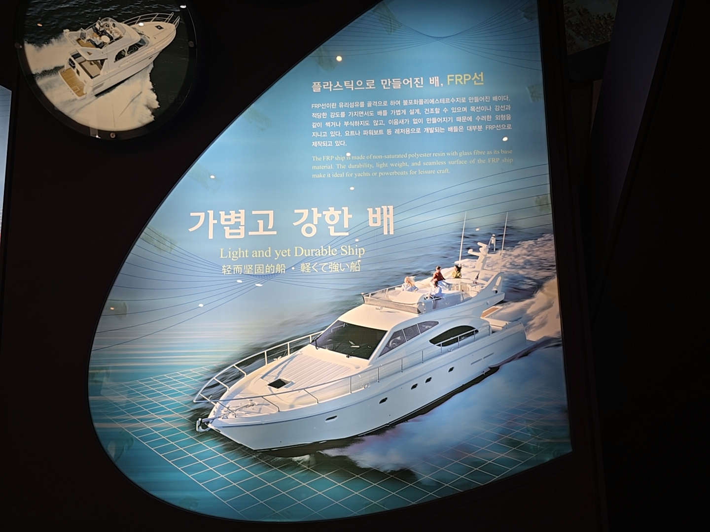 플라스틱으로 만들어진 가볍과 강한배는 FRP선이다.