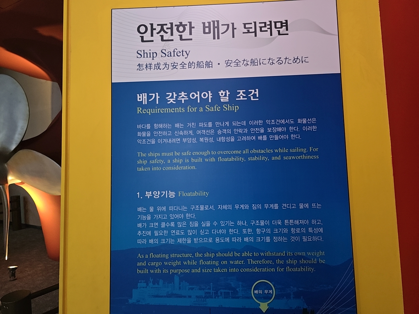 조선해양전시관에서는 국내 선박의 발달역사와 선박 건조기술 등을 살펴 볼 수 있다.