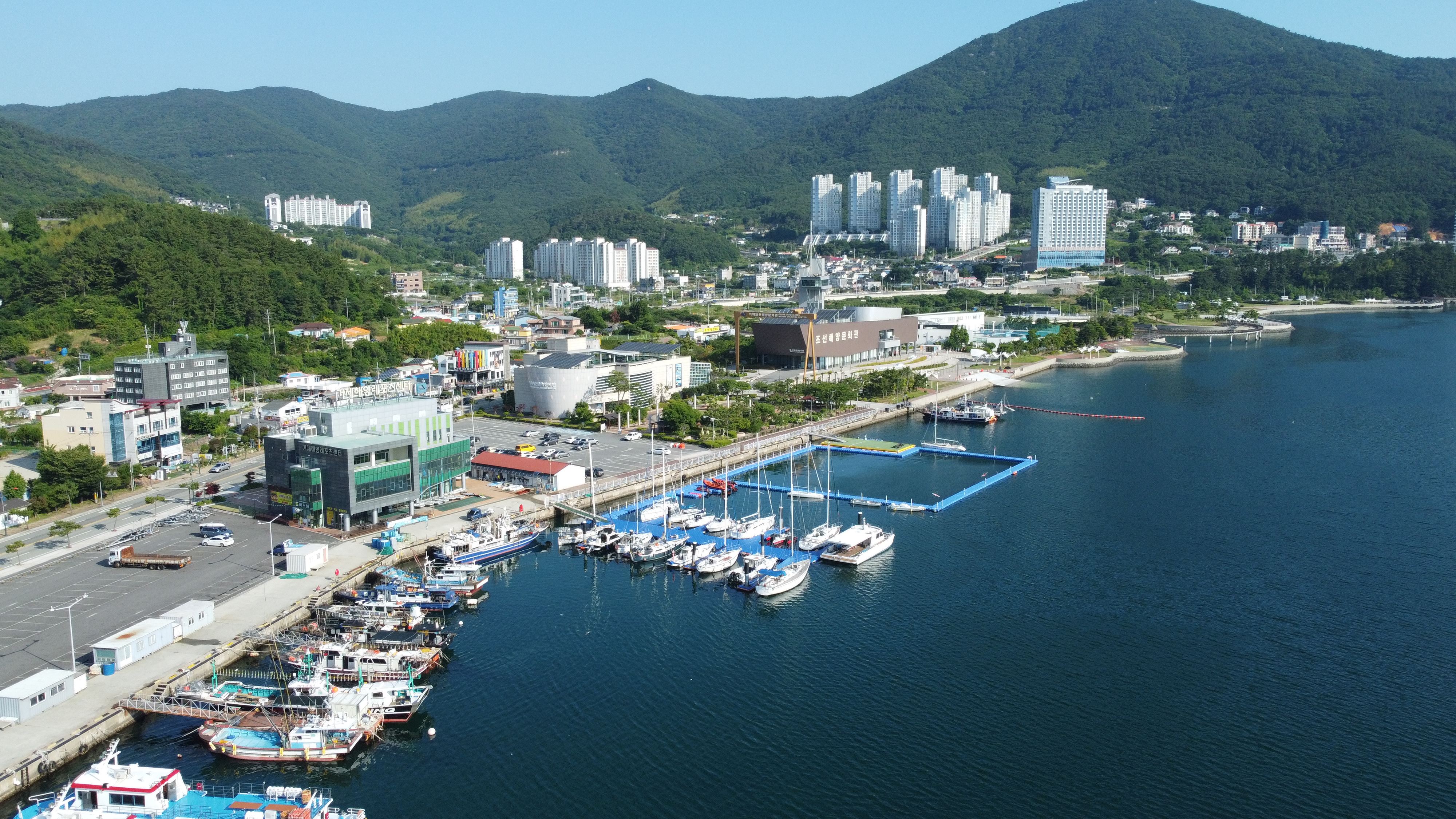 지세포관광여객터미널 앞에는 요트들이 정박해 있다.
