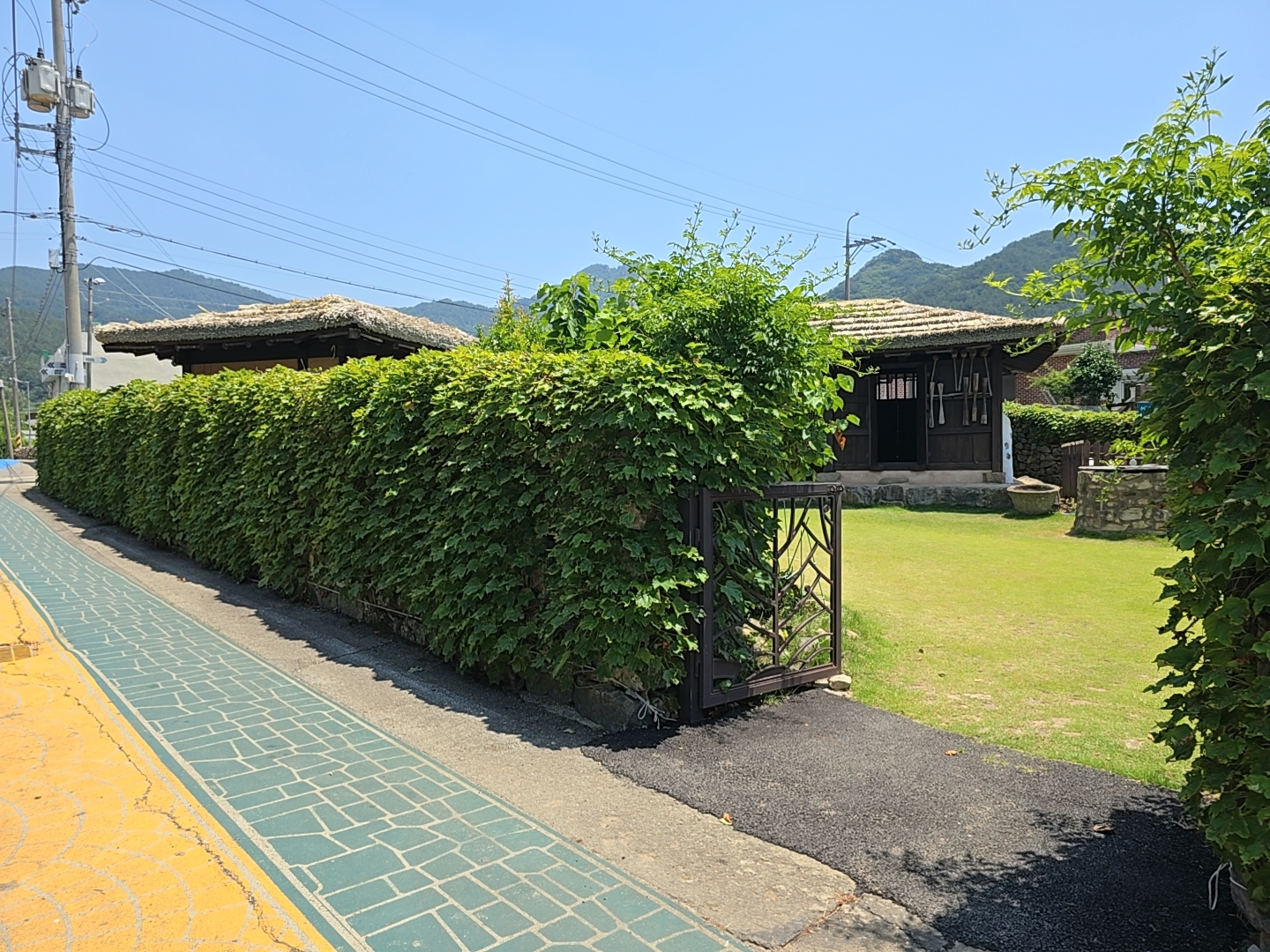 왼쪽에 청마 생가가 있고 오른쪽에는 청마기념관이 있다.