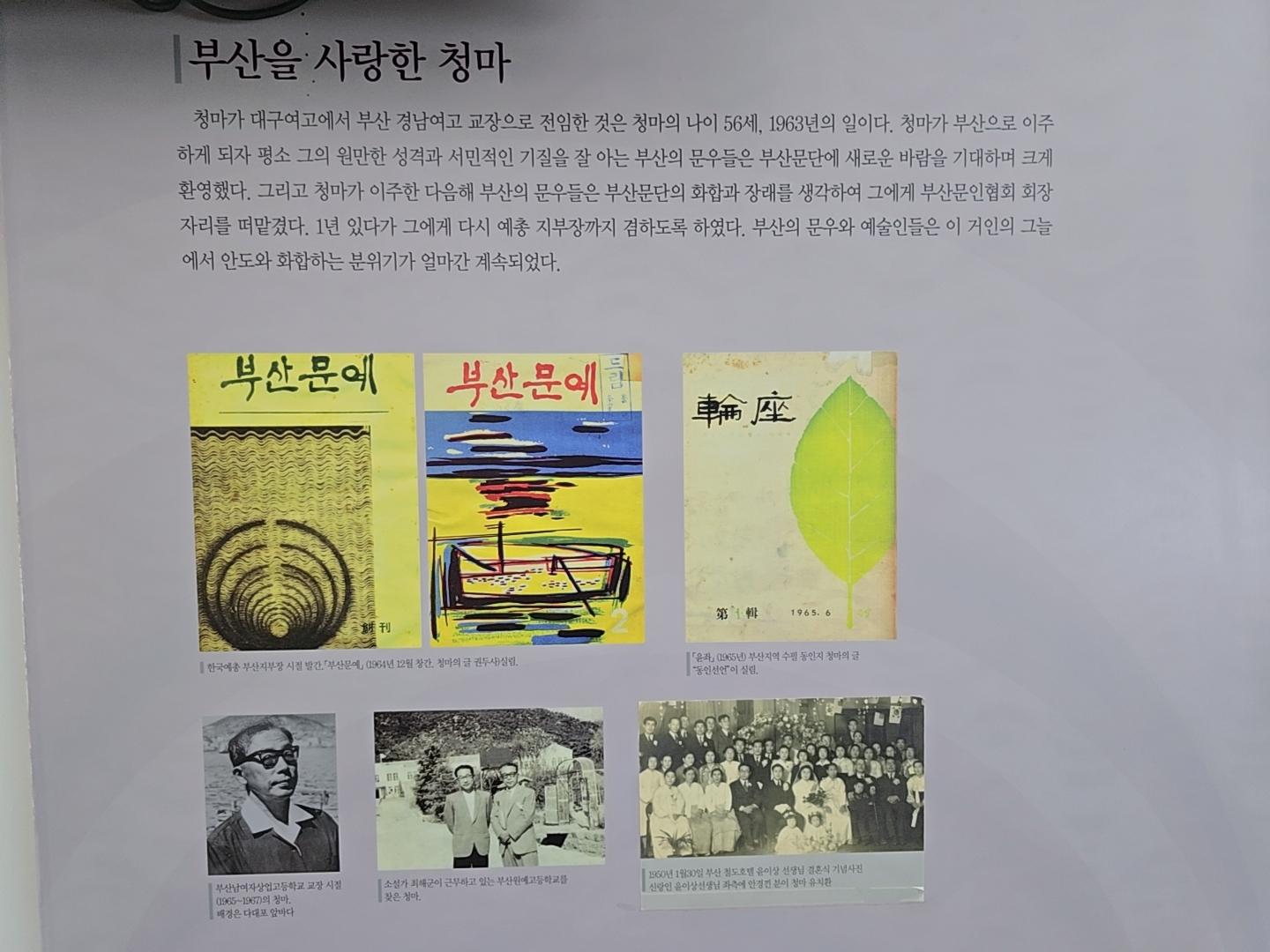 청마가 대구여고에서 부산 경남여고 교장으로 전임한 것은 청마의 나이 56세, 1963년의 일이다. 청마가 부산으로 이주하게 되자 평소 그의 원만한 성격과 서민적인 기질을 잘 아는 부산의 문우들은 부산문단에 새로운 바람을 기대하며 크게 환영했다. 그리고 청마가 이주한 다음해 부산의 문우들은 부산문단의 화합과 장래를 생각하여 그에게 부산문인협회 회장 자리를 떠맡겼다. 1년 있다가 그에게 다시 예총 지부장까지 겸하도록 하였다. 부산의 문우와 예술인들은 이 거인의 그늘에서 안도와 화합하는 분위기가 얼마간 계속되었다.