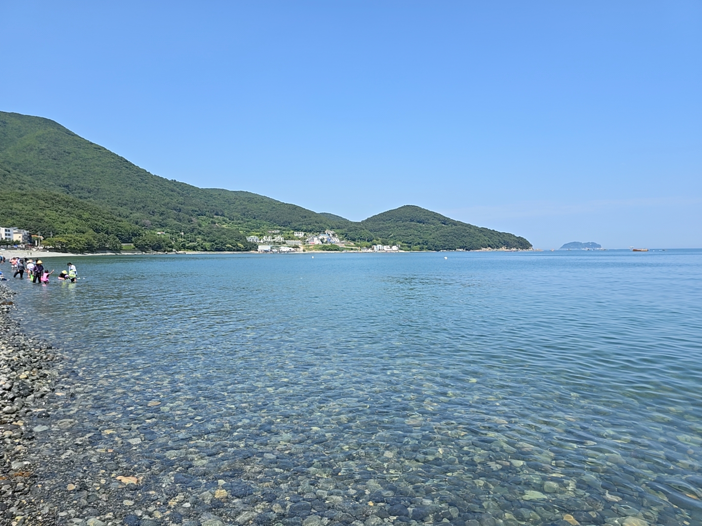 해변 면적은 3만㎢, 길이는 1.2㎞, 폭은 50m로 거제도 남쪽에 위치한다.