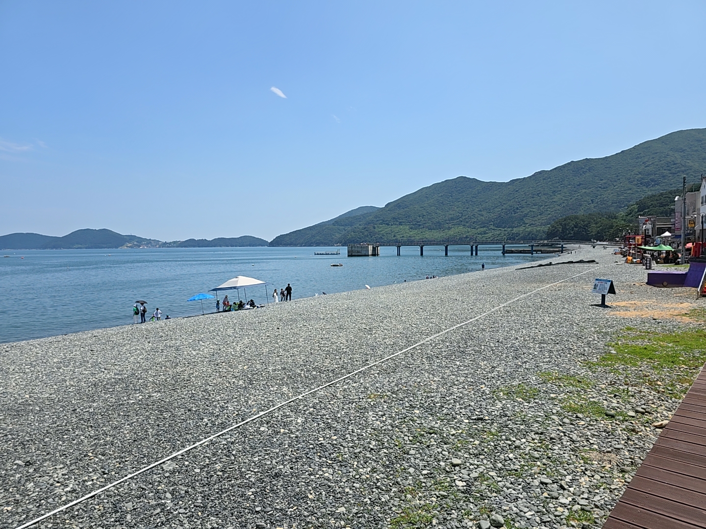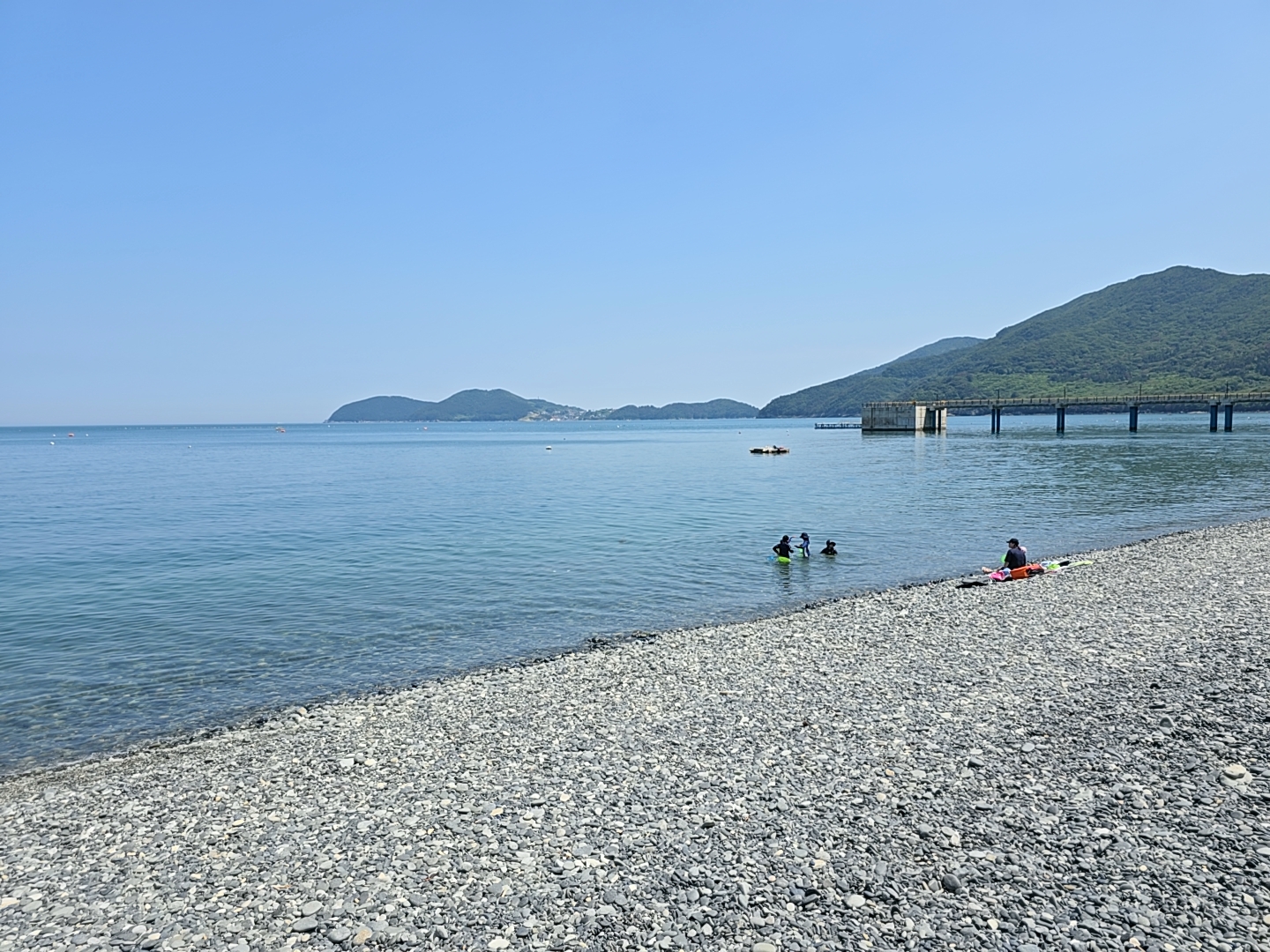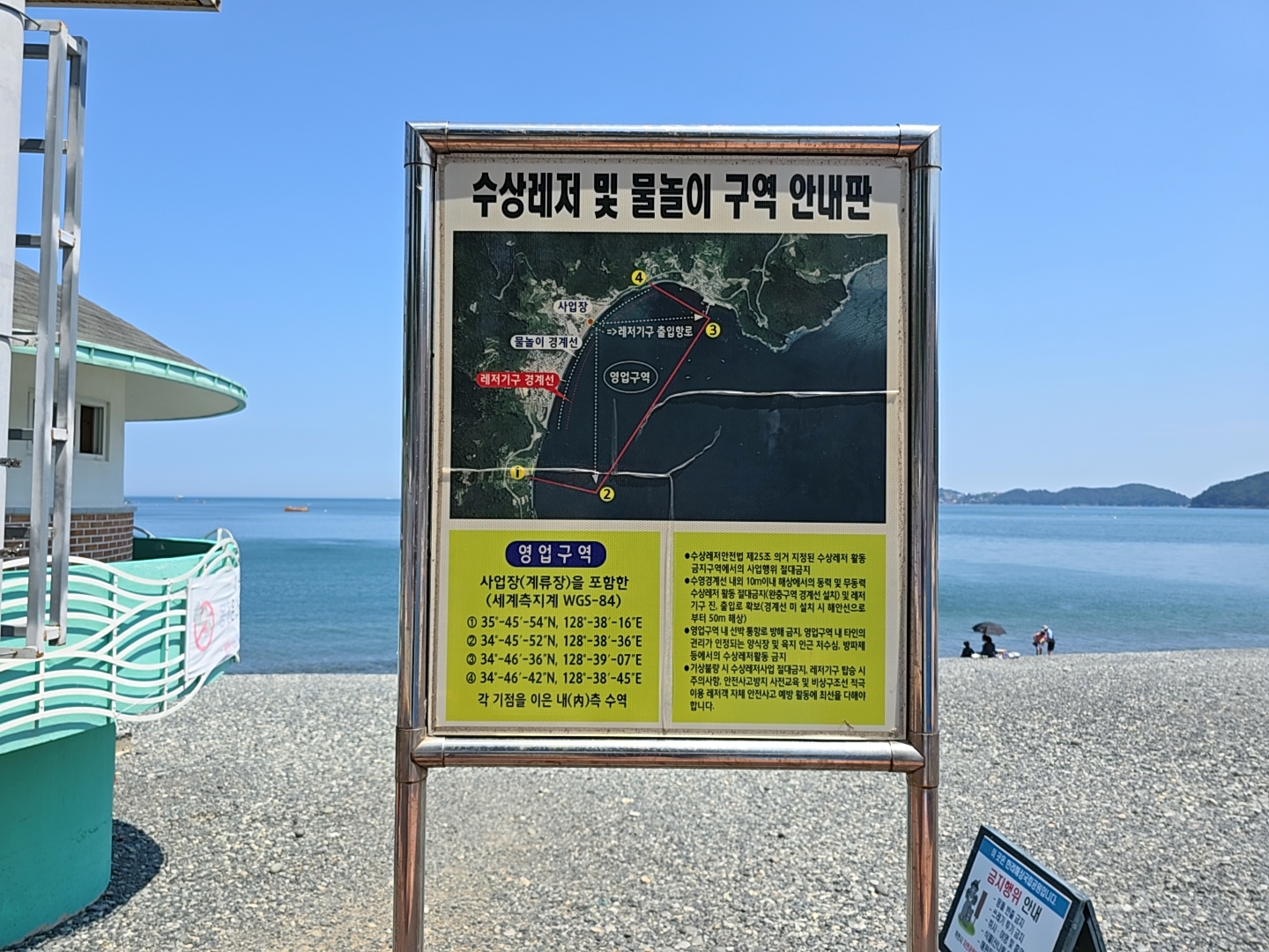 여름철 한낱엔 몽돌이 뜨거우므로 슬리퍼나 샌들을 착용하는 것을 추천한다. 몽돌밭은 모래밭보다 대체로 수심이 갑자기 깊어지기 때문에 해수욕 시 주의가 필요하다. 개장철에는 소방서에서 나온 안전요원이 상주하며 제트스키나 바나나보트 같은 수상스포츠를 즐길 수 있다.