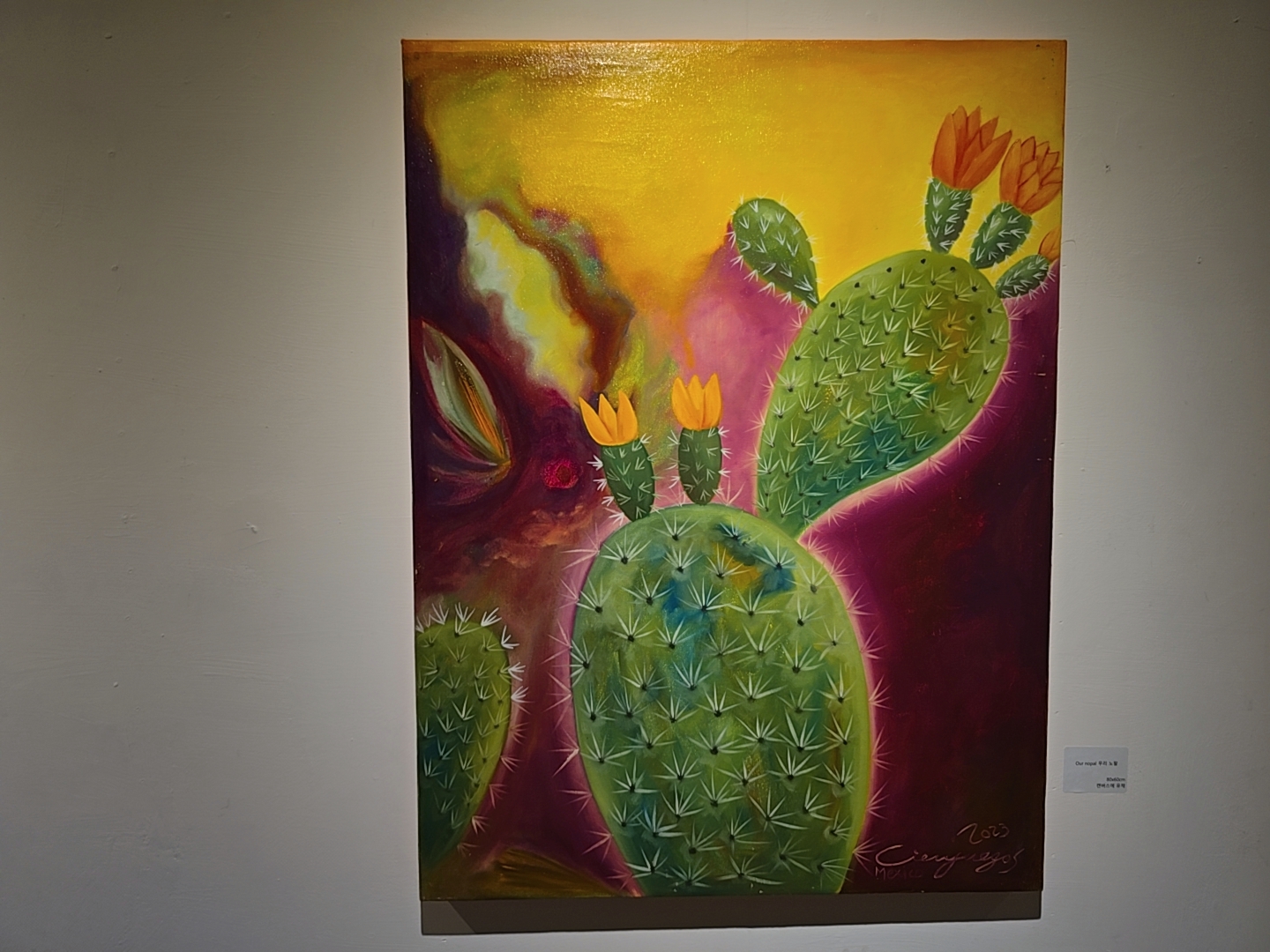이번 전시는 작가가 여행지에서 만난 풍경과 해안의 야경들을 그린 작품으로 이루어져 있다. 아크릴 물감의 장점을 살려 속도감 있게 그려나감으로써 이어지는 힘 있는 붓 터치와 작품에 따라 나이프 페인팅, 블렌딩 기법을 활용하여 다양하게 표현된 것이 특징이다.
