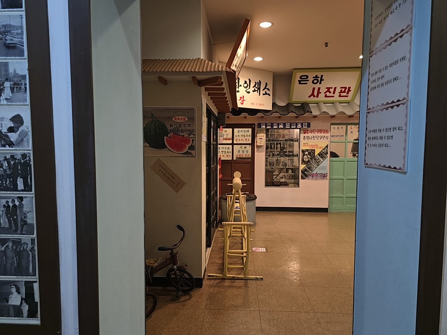 복도에는 과거 사진들과 포스터들이 전시되어 있었다.