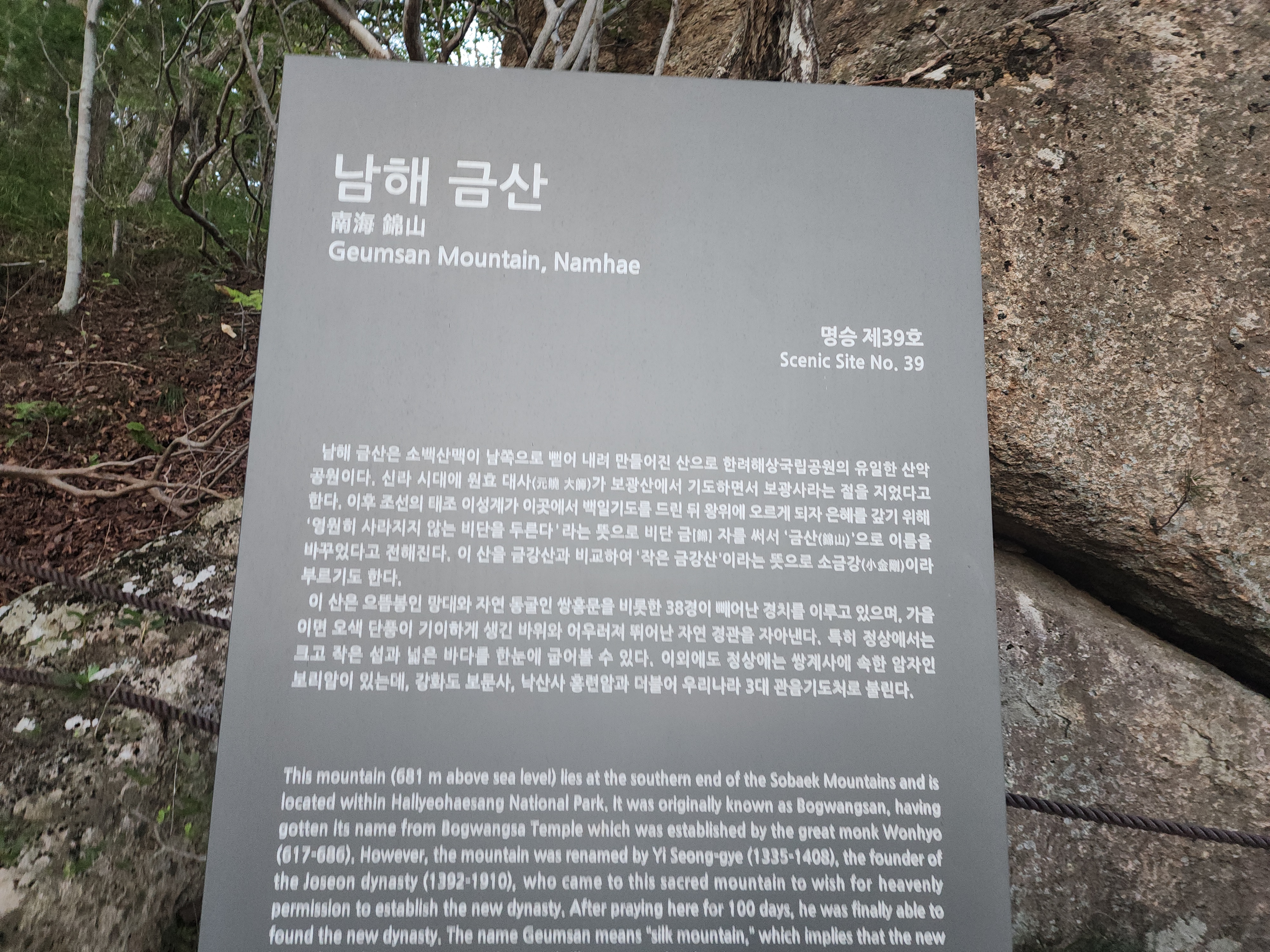 남해군 금산은(681m)은 명승 제39호이다.