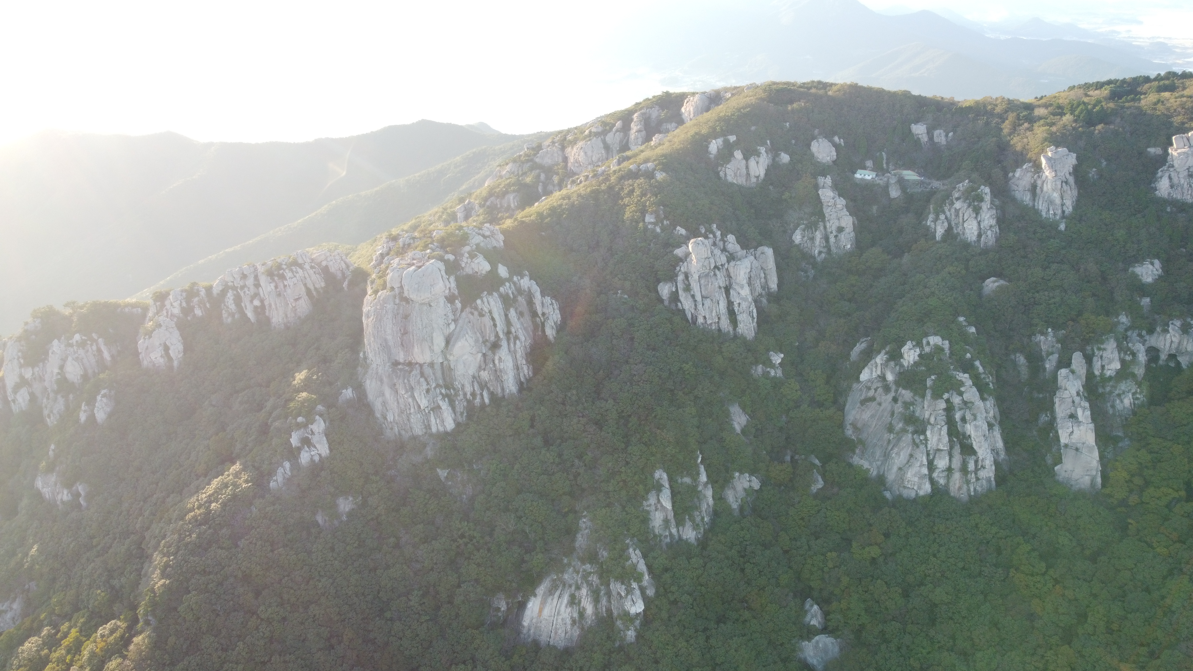 암해 금산은 소백산맥이 남쪽으로 뻗어 내려 만들어진 산으로 한려해상국립공원의 유일한 산악공원이다.